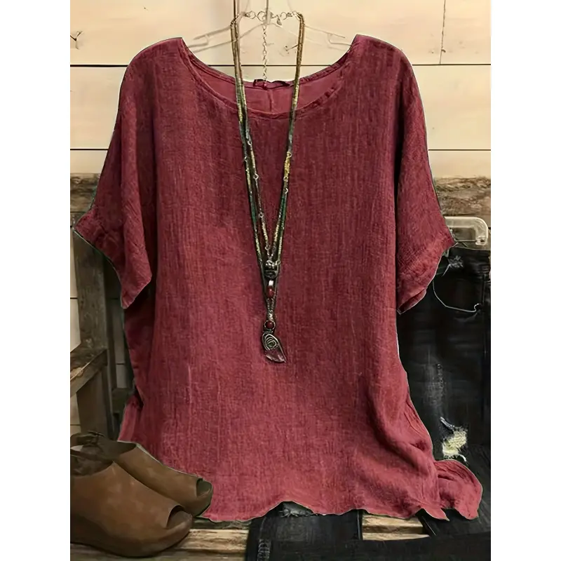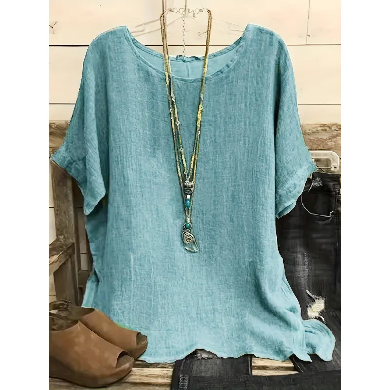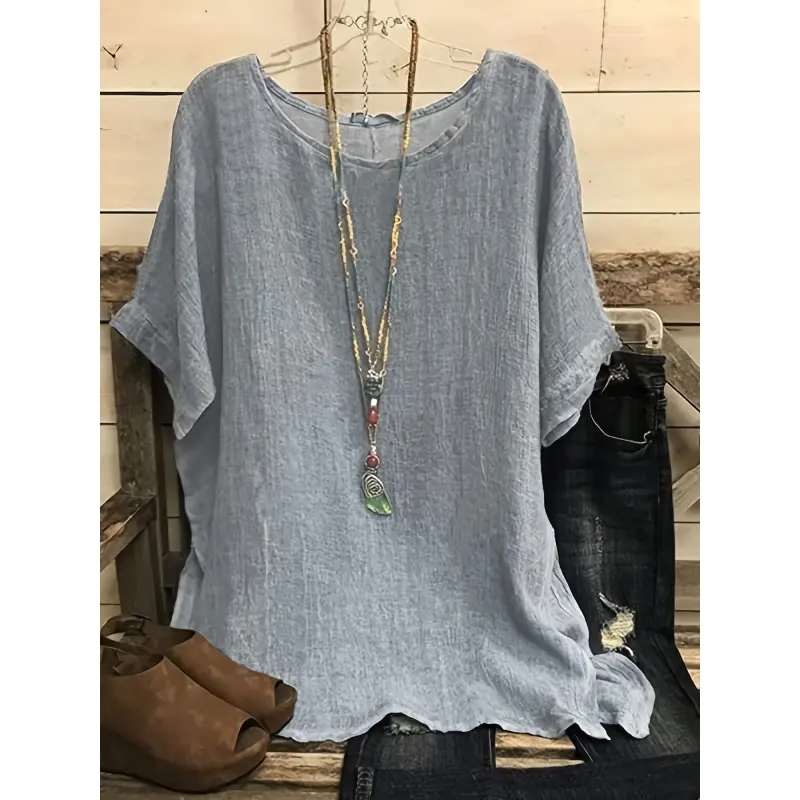 Plus Size Casual Short Sleeve T-Shirt - Lightweight Semi-Transparent Round Neck Top, Machine Washable Non-Stretch Fabric for Spring, Summer, and Autumn, Essential for Versatile Layering