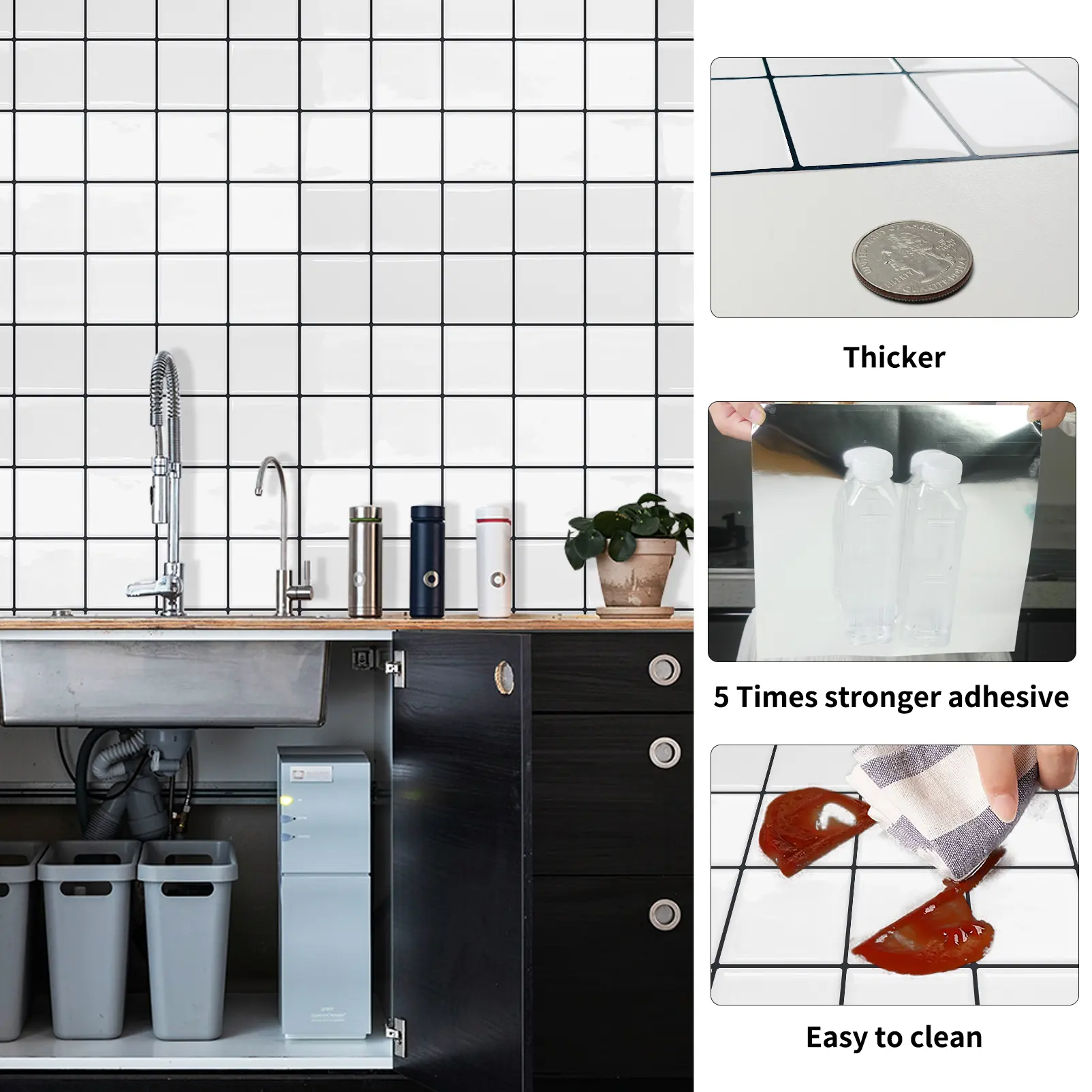 Heat Resistant & Waterproof — Safe for installation near heat sources such as stoves, sinks, and fireplaces. The durable surface retains its shine and aesthetic appeal even in challenging environments, while remaining remarkably easy to clean and maintain. Powerful commercial-grade adhesive — Equipped with a high-strength self-adhesive backing, it adheres firmly to smooth or slightly textured walls without the need for grout or messy glues, ensuring a long-lasting and secure bond.