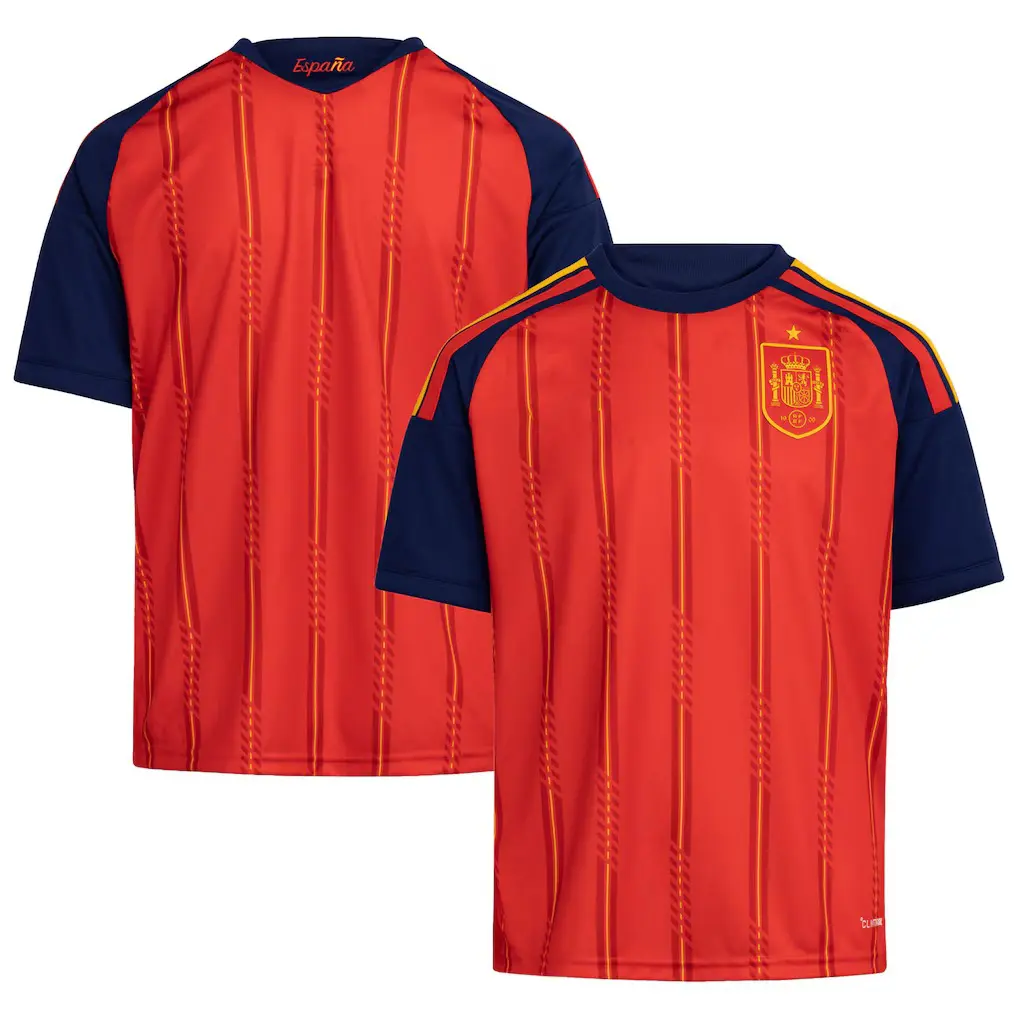 Spain Football Jersey Home Away 2026 World Cup España RFEF Crown Crest Red Navy Vertical Stripe Texture Fan Shirt Men Women Loose Casual Streetwear Spring Fall Sport Idol Supporter Gift Tee