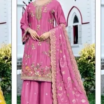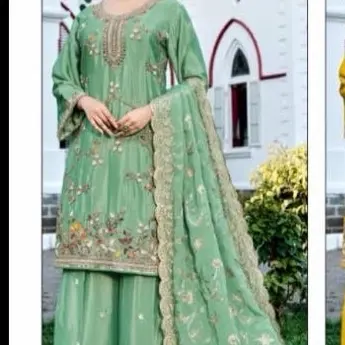 This suit is suitable for various settings, from family gatherings to professional events. Its pastel tones and silk material make it a standout choice. Pair it with your favorite accessories to complete the look. Elevate your style with the Chinon Silk Pastel Pakistani Suit.