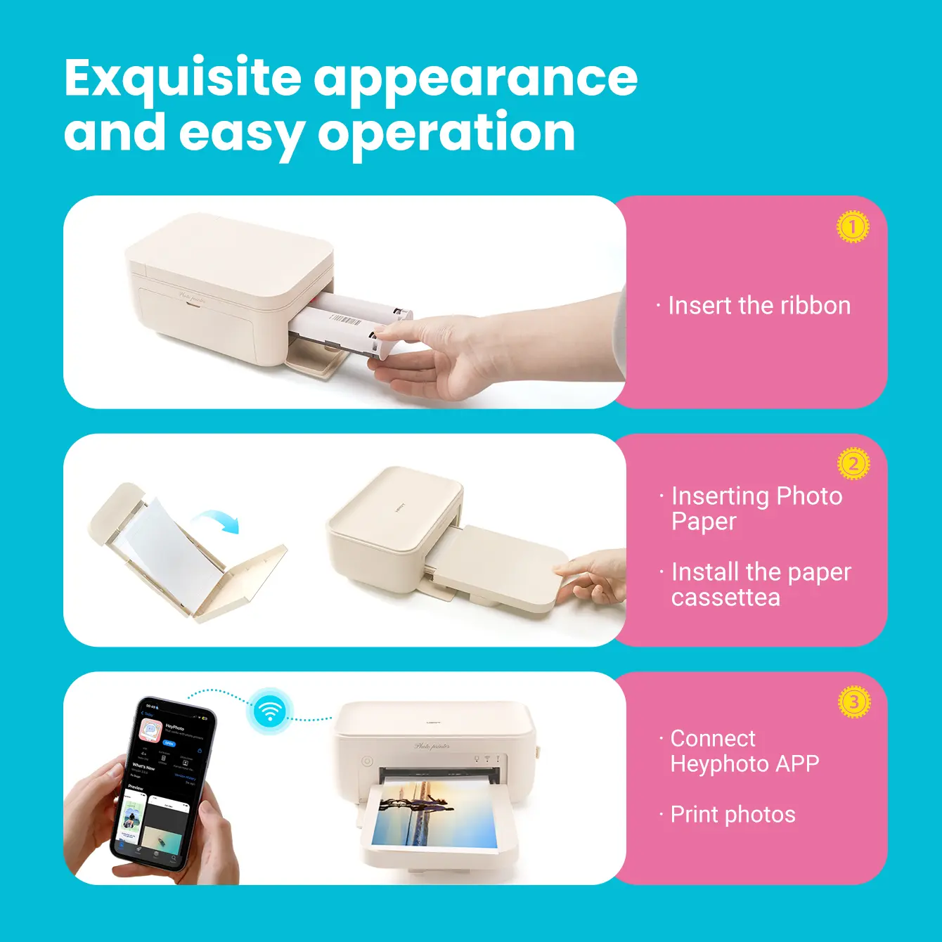 HPRT CP4100 Portable Desktop Photo Printer, 300DPI High Definition Wireless Photo Printer, Supports Wi Fi Connection for Smartphones and Tablets, Capable of Printing Color Multi Size Instant Sublimation Printer