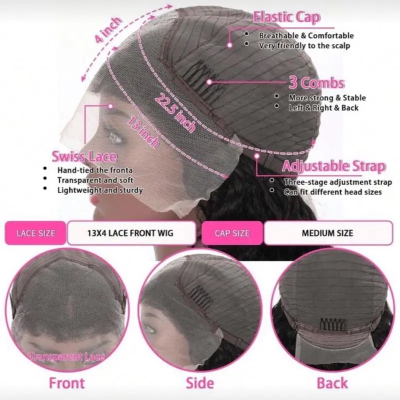 Ombre Blonde Deep Wave Bob Wig with Dark Roots Short Human Hair Glue-less Lace Front 13x4 Pre Plucked Hairline Transparent Lace Frontal 180% Density for Natural Look