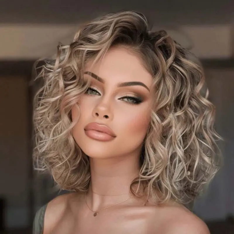 Ombre Blonde Deep Wave Bob Wig with Dark Roots Short Human Hair Glue-less Lace Front 13x4 Pre Plucked Hairline Transparent Lace Frontal 180% Density