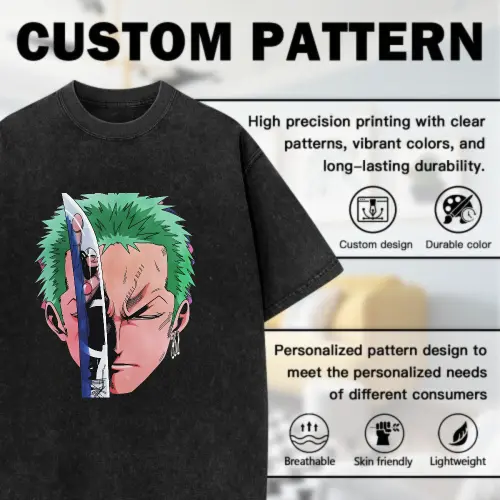 Zoro Vintage Washed Oversized Tee 100 Cotton Original Anime Graphic Crew Neck T Shirt Casual Streetwear Tops For Men Women Soft Breathable Moisture Wicking Loose Fit Urban Street Style Daily Outfit Vacation Party Hip Hop Fashion Tee 26