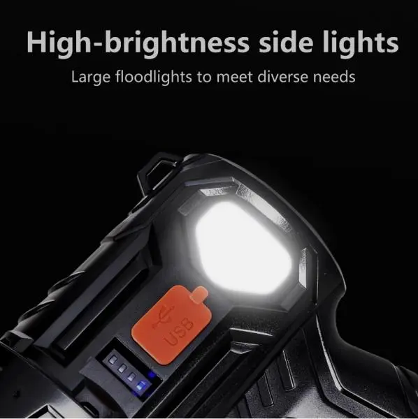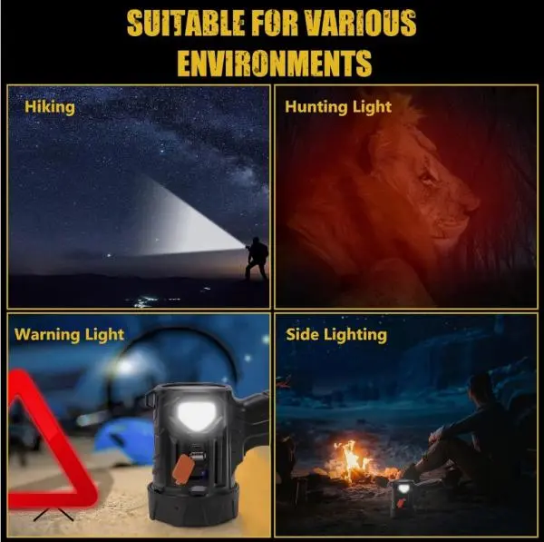 ·Ultra-Bright LED: Equipped with a high-lumen LED chip that projects a powerful, focused beam up to 500 meters, ideal for search and rescue or long-range lighting.