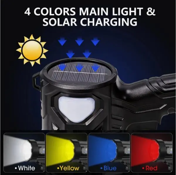 This flashlight isn't just a tool – it's your reliable partner in any situation where light matters. Whether you're exploring the great outdoors or preparing for emergencies, this solar-powered spotlight ensures you're always ready.