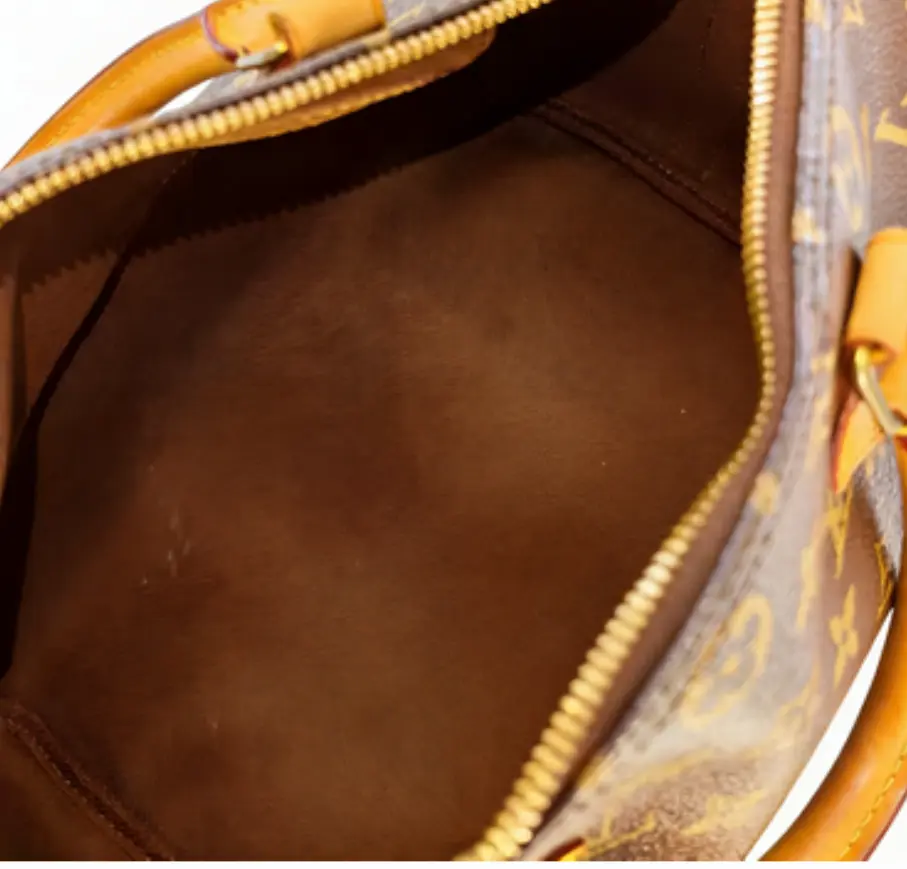 This is an authentic LOUIS VUITTON Monogram Speedy 30. This handbag is crafted of traditional Louis Vuitton monogram coated canvas, vachetta cowhide leather trim and gold hardware. The top opens to a black canvas interior.