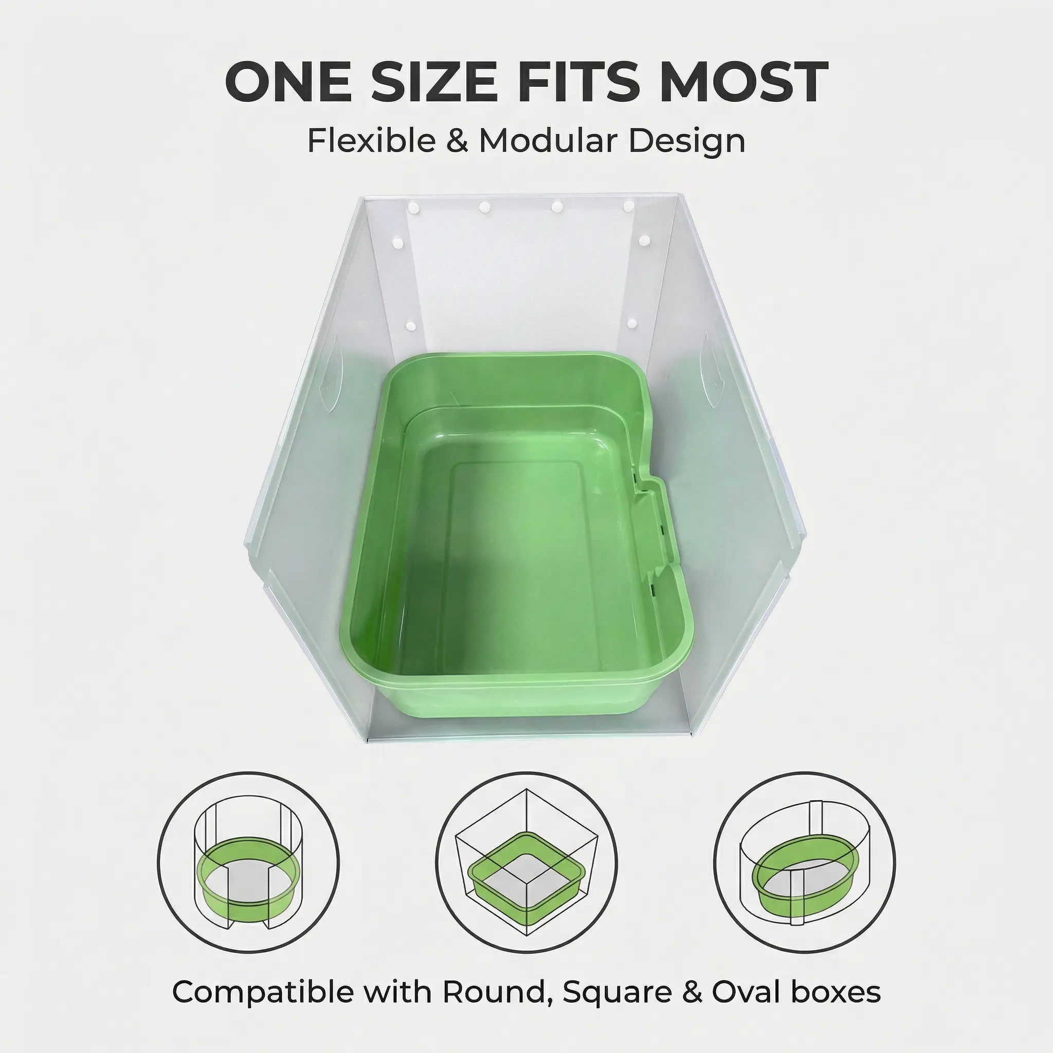 Cats are natural diggers, but their enthusiastic scratching shouldn’t turn your home into a sandstorm zone. Our extra-tall splash guard solves pet owners’ number one headache: keeping litter where it belongs (in the litter box!) and protecting your space from messy accidents. Perfect for busy households, small apartments, and anyone who wants to spend less time cleaning and more time cuddling their furry friends.