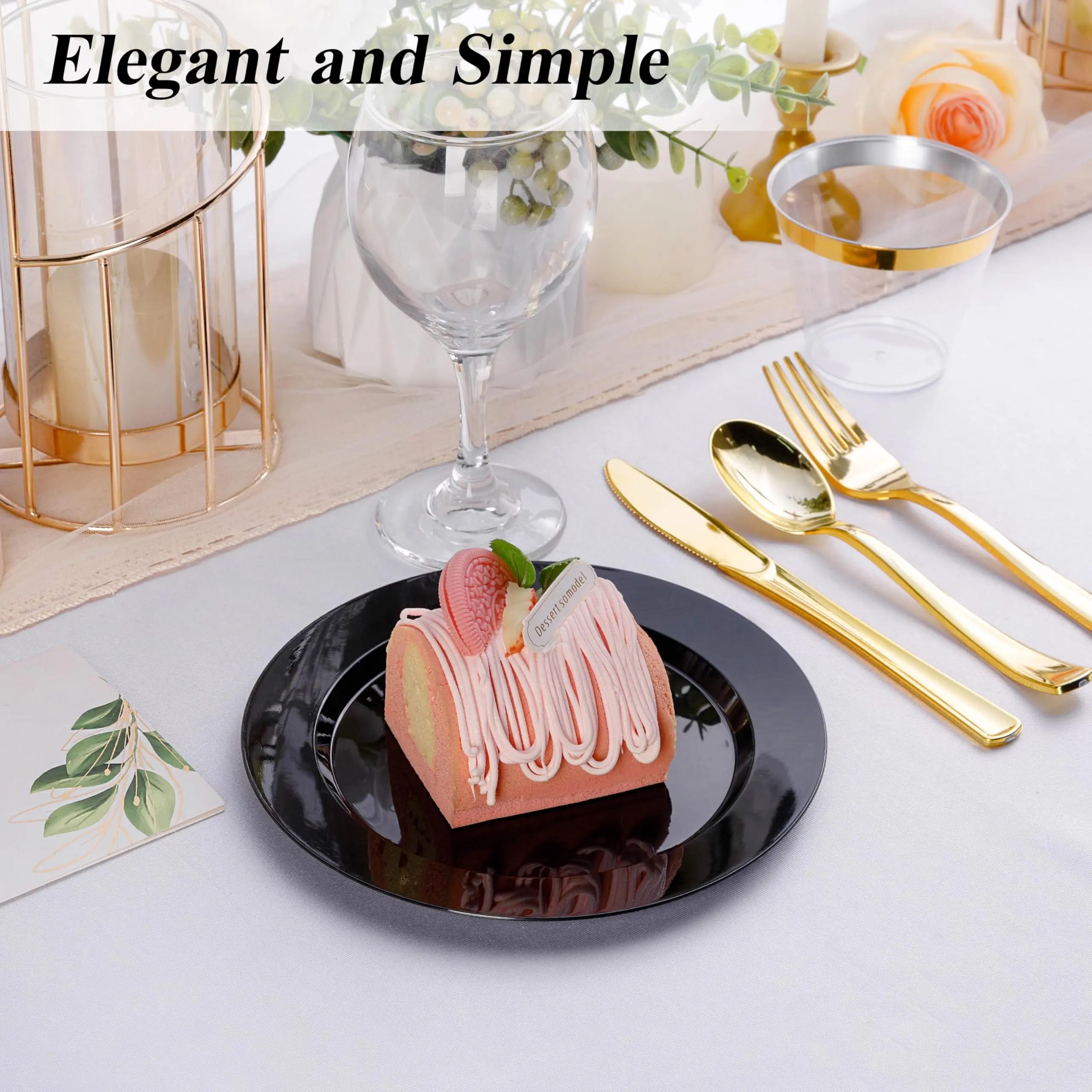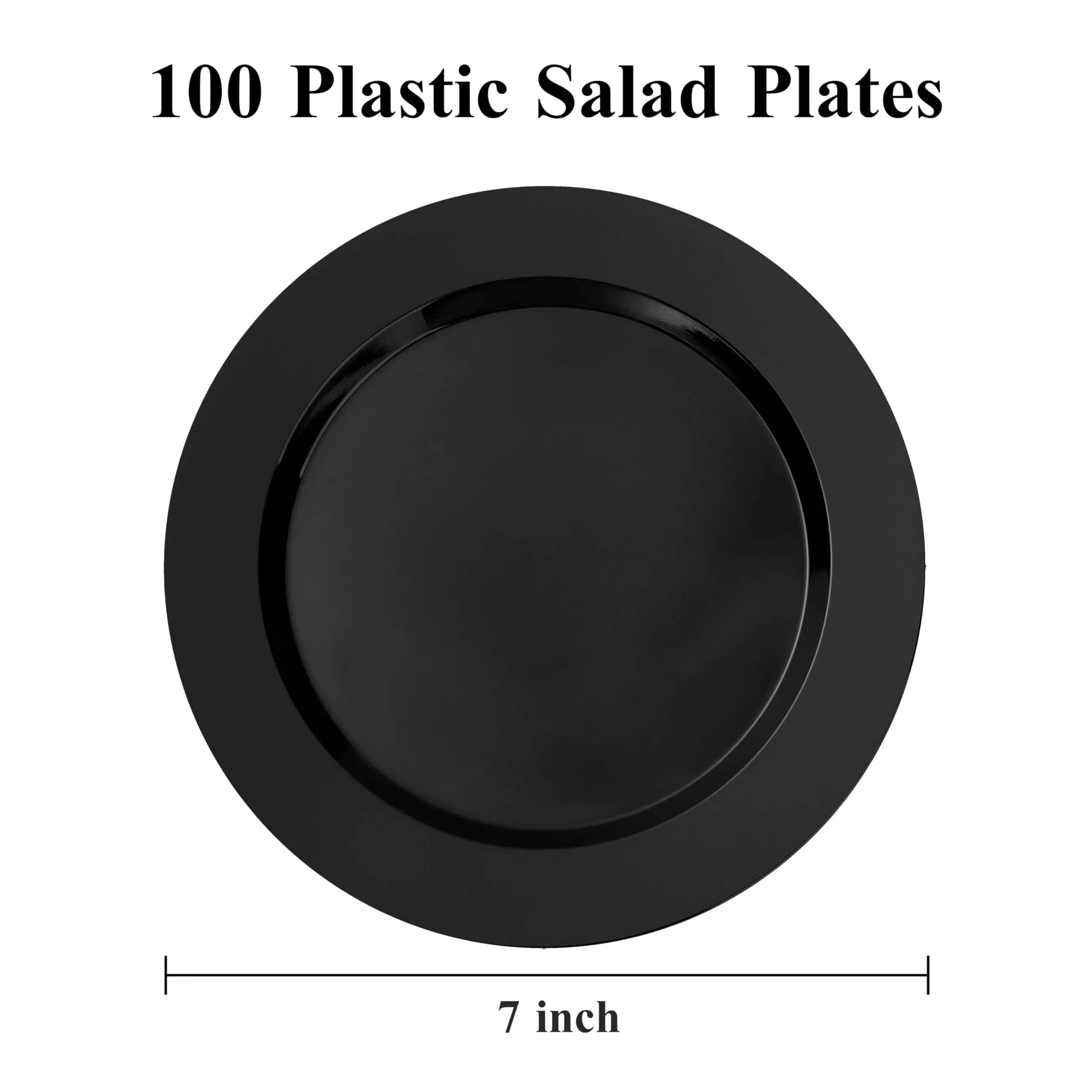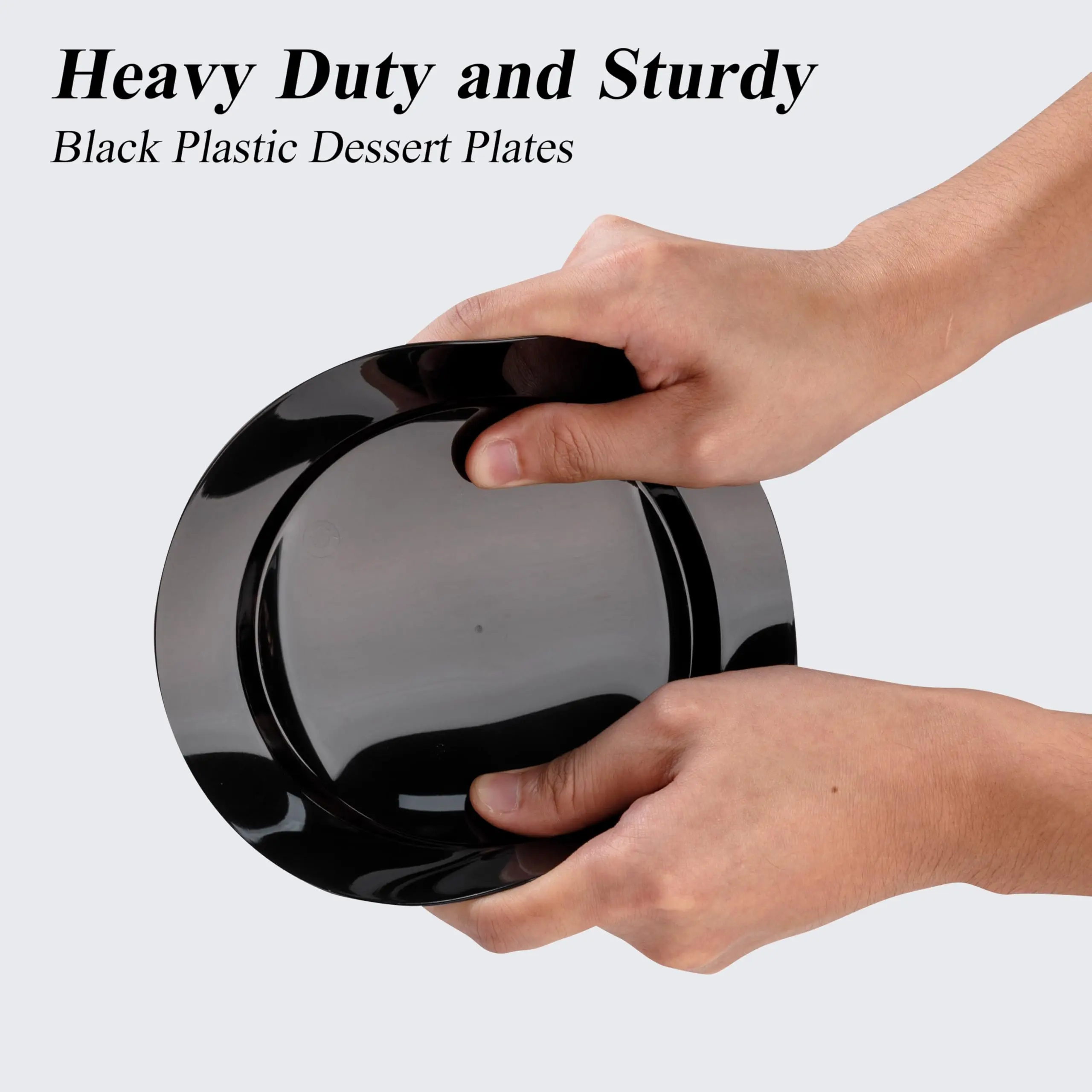100PCS Black Plastic Dessert Plates, Premium Hard Disposable Plates for Party, Wedding