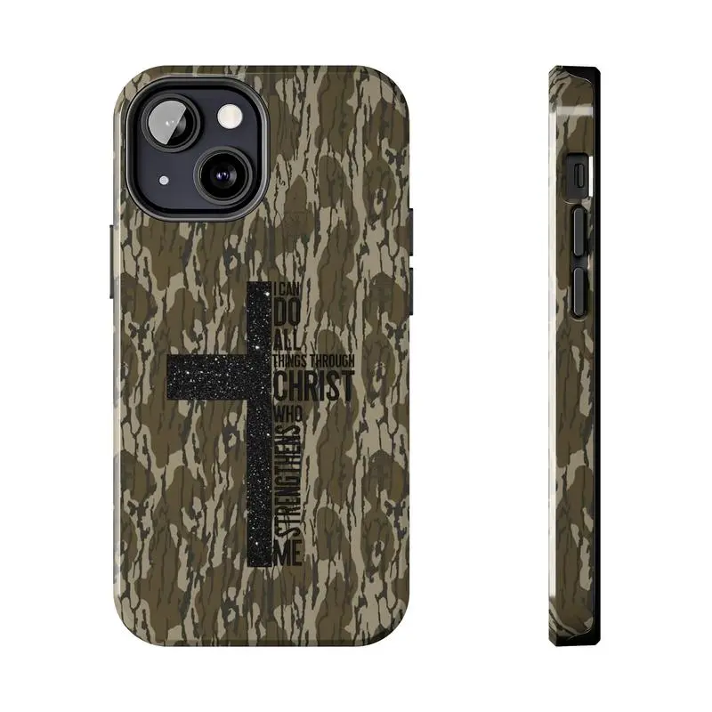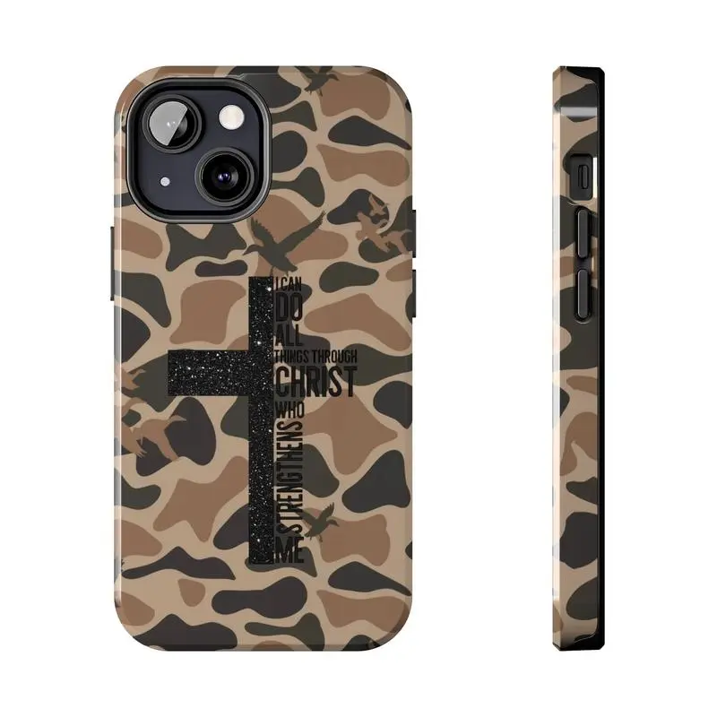 Vintage I Can Do All Things Through Christ Who Strengthens Me Camo Cross Phone Case 11 12 13 14 15 16 Compatible with Samsung Galaxy S25