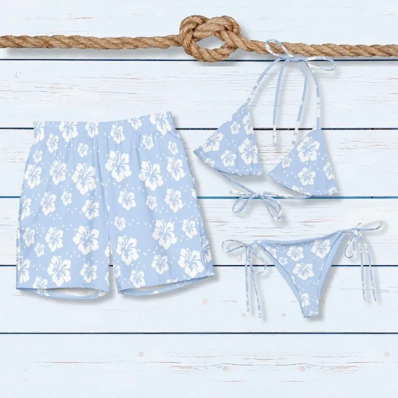 Pastel Floral Matching Swimsuits, Romantic Couples Beachwear Set, Tropical Aesthetic Honeymoon Outfits, His and Hers Gift