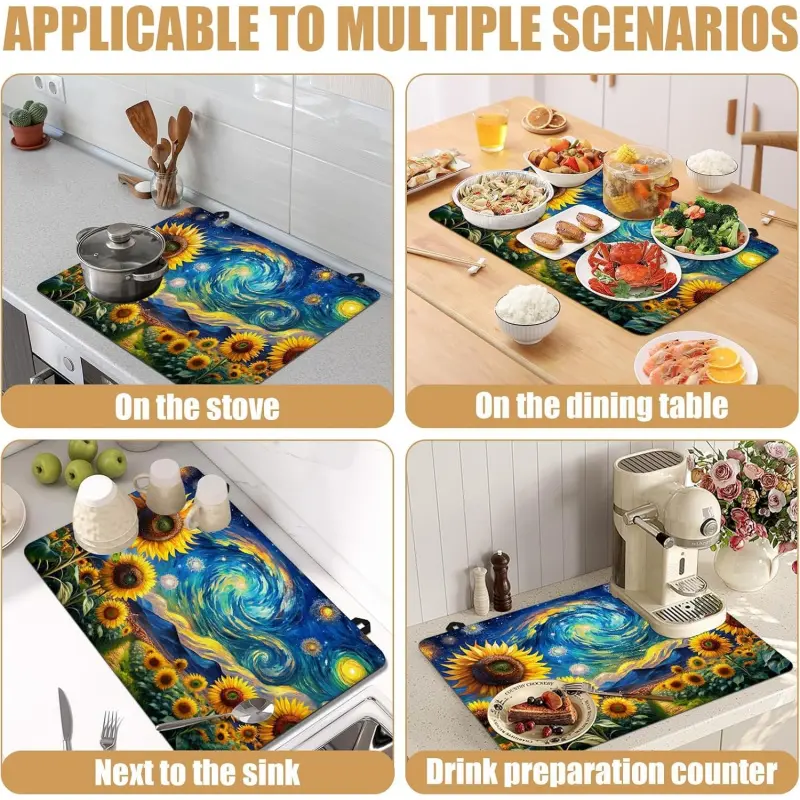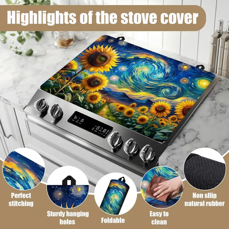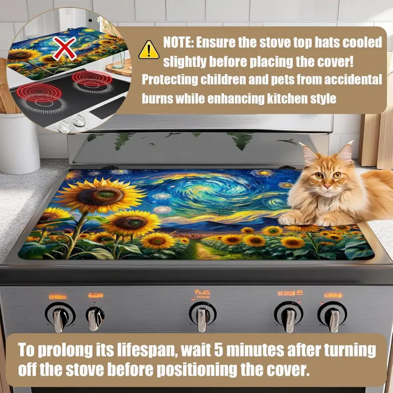 JOYFINITY Starry Sunflower Stove Top Covers for Electric Stove, Electric Gas Stove Pad Heat Resistant Range Cooktop Protector for Home Decor Kitchen