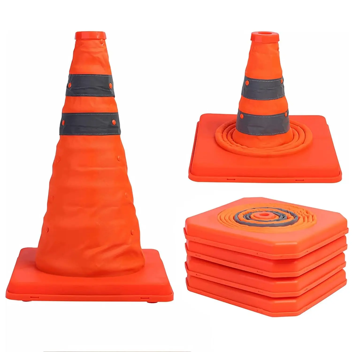 ·Meets MUTCD regulations for traffic cones and channeling devices. Constructed of orange waterproof solid oxford fabric,Two silver reflective bands made of premium grade water-resistant reflective material. That determined that our traffic cones are more flexible.