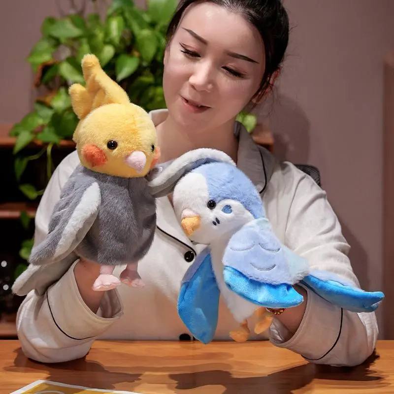 Bird Soft Stuffed Toys Doll Parrot Cosplay Plush Doll Educational Baby Toy Kawaii Cockatiel/Budgerigar/Monk Parakeet Hand Puppet