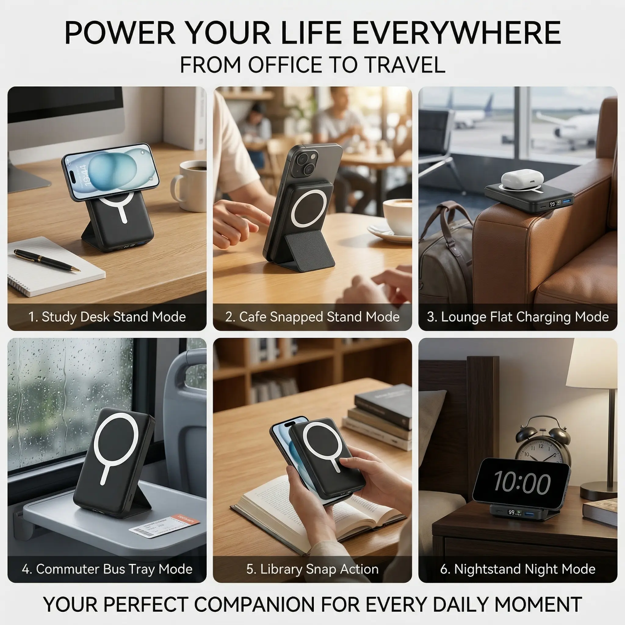 Podoru Magnetic Wireless Power Bank offers a stable and convenient charging solution for daily use. Designed with modern usability in mind, it keeps your device powered efficiently throughout the day. Equipped with strong magnetic attachment for a secure fit, it weighs only 0.44 lbs for effortless portability.