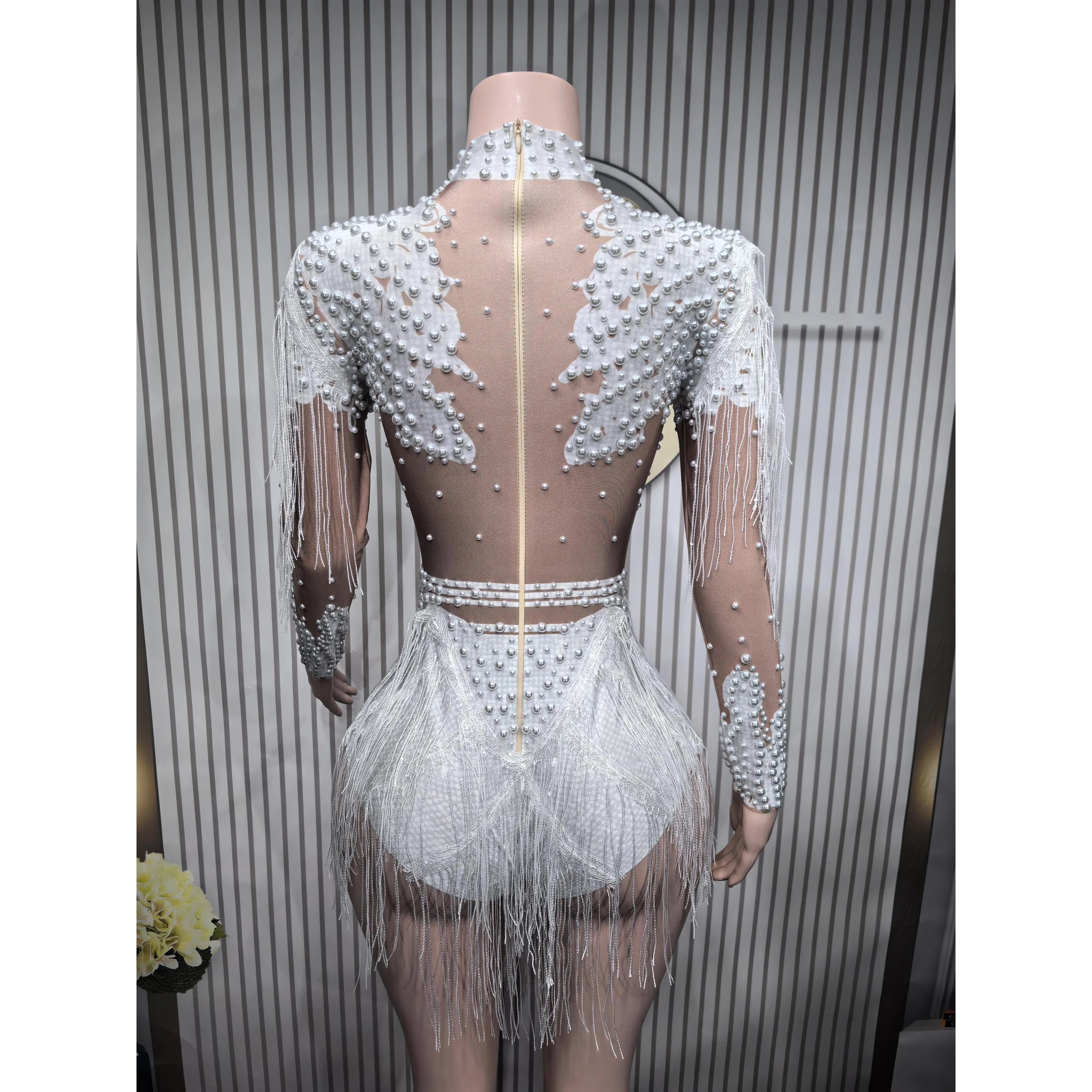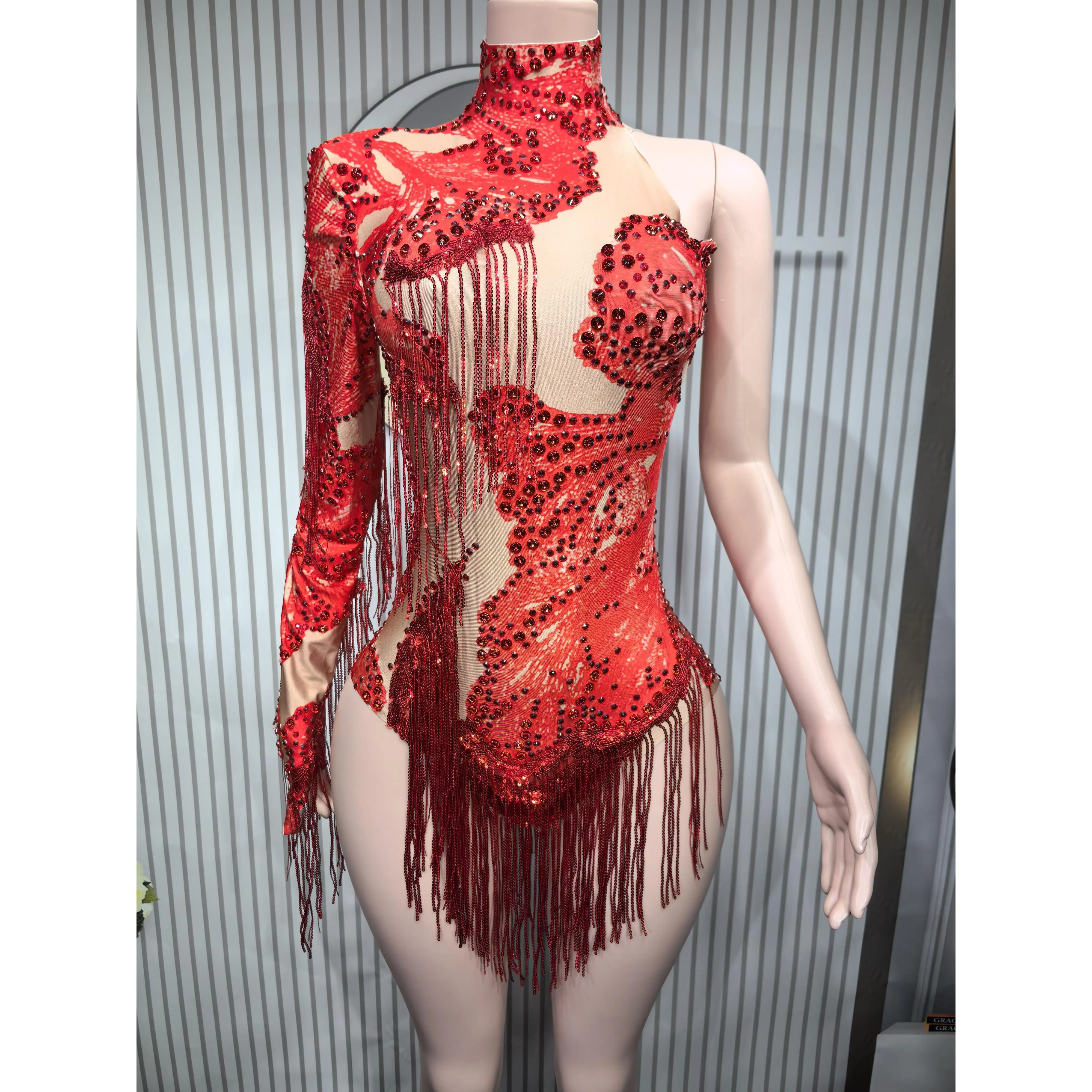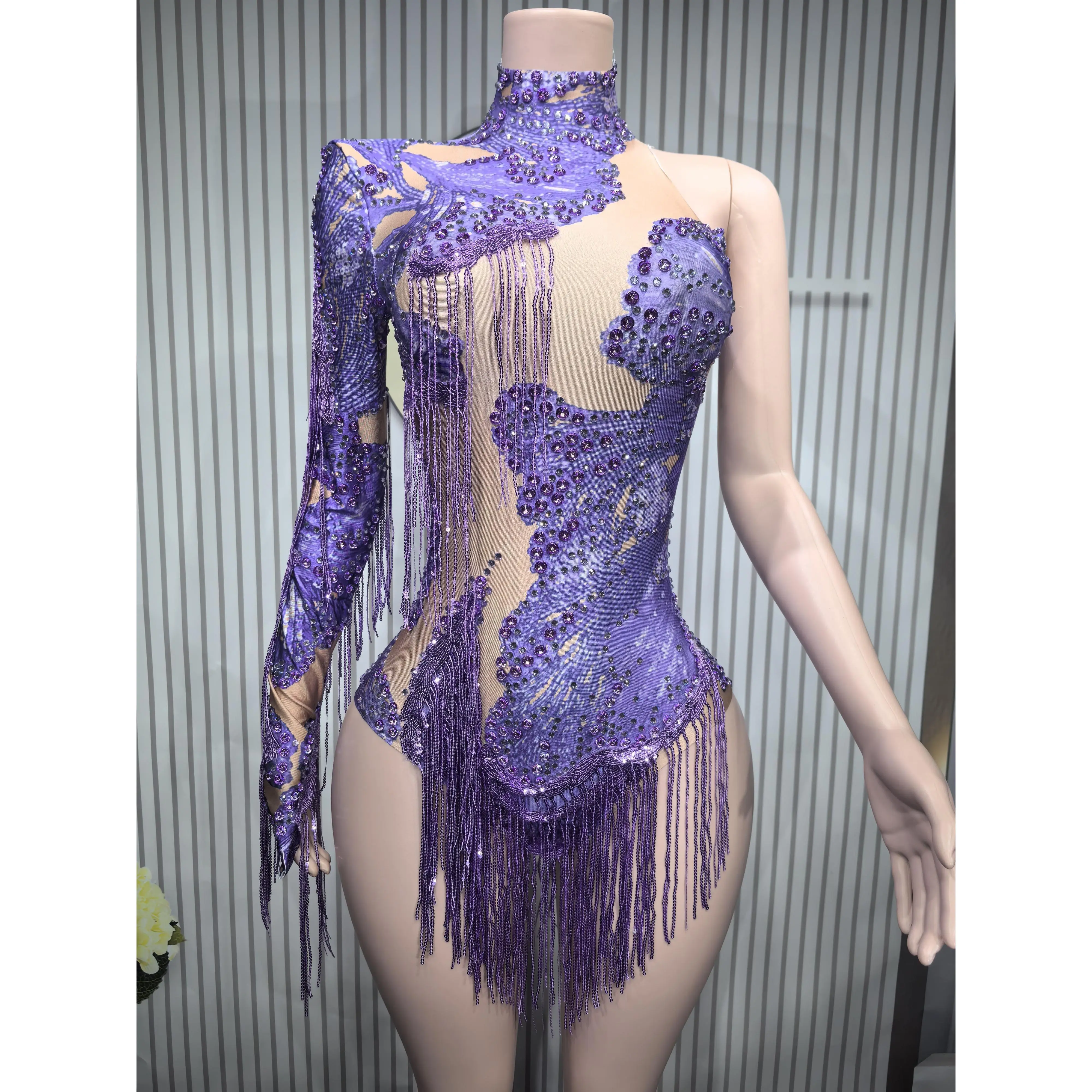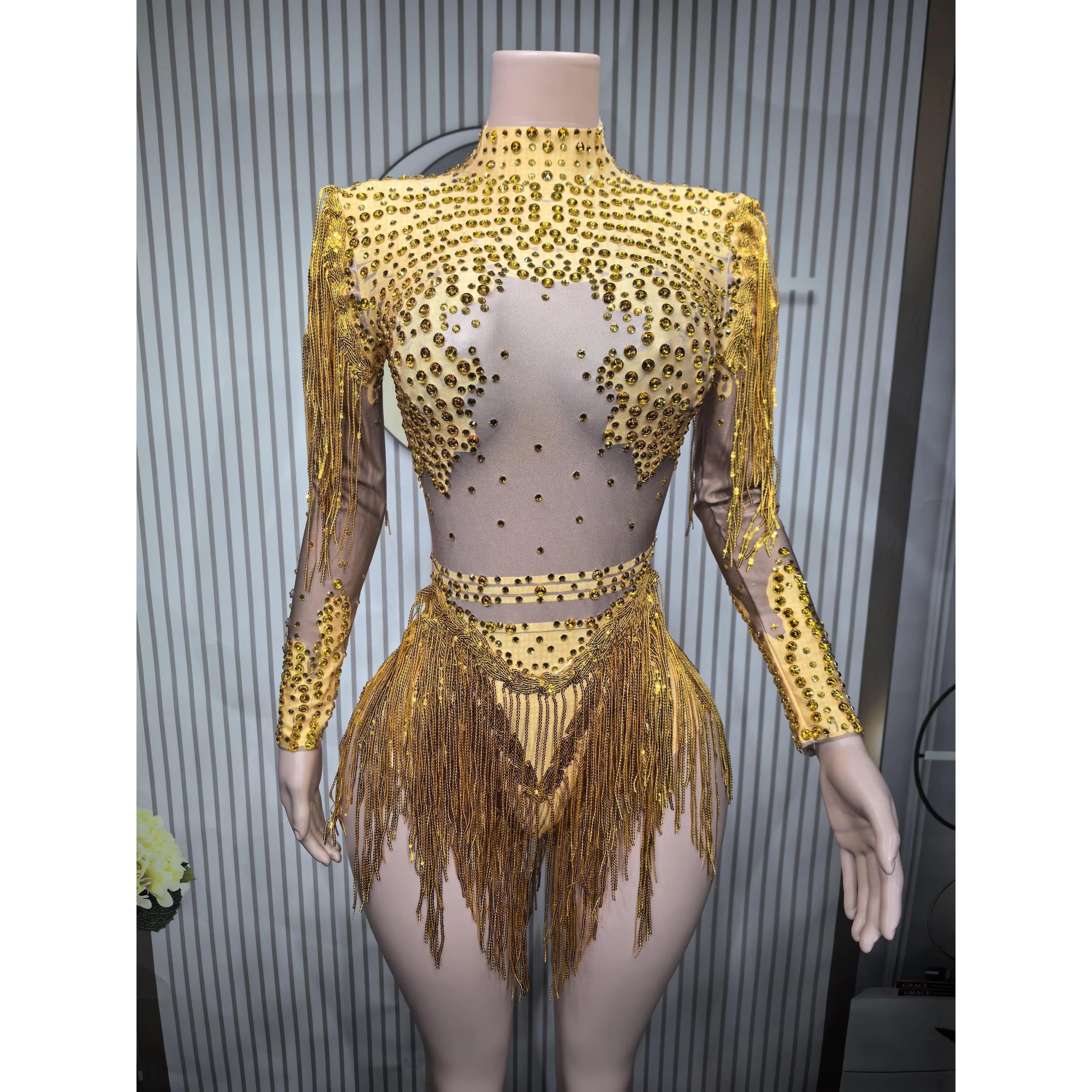 Gold Silver Sequins Tassel Elastic Bodysuit Sex)Pole Latin Dance Stage Wear Nightclub  DJSinger Dancer Performance Costume  Q025