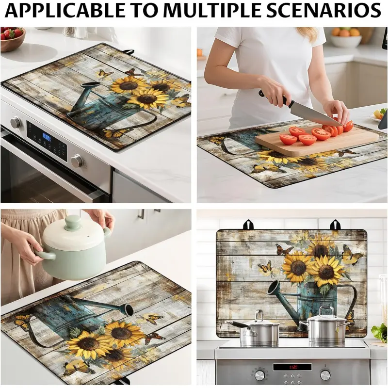 Stove Top Cover for Electric Stove 28"x20", Cooktop Glass Stove Top Covers Washable Decorative Stove Protector Mat for Home Kitchen Cooktops