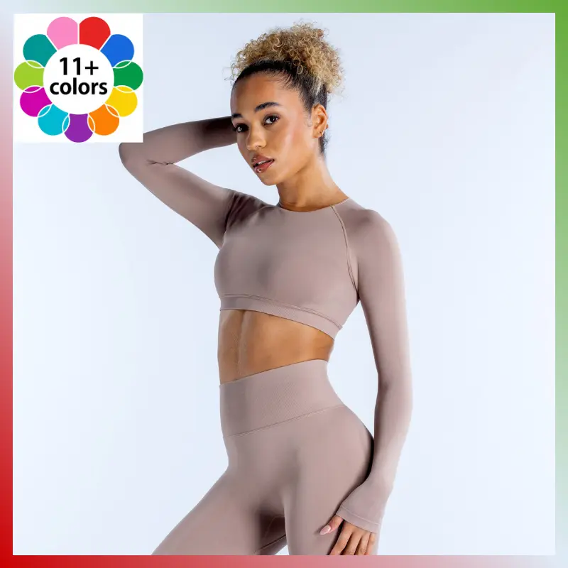 Designer dupe Dynamic Long Sleeve Crop Top Long sleeve Cropped fit Subtle contouring Ribbed underband Open back with twist at neck Sexy Fitted Long Sleeve Crop Top