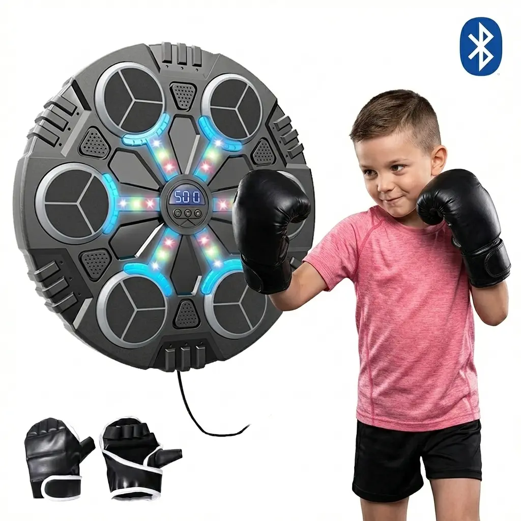 Harkapy Bluetooth Music Boxing Machine Wall Mounted LED Punch Trainer with Gloves for Kids Teens Home Gym Fitness Interactive Workout 3 Modes High-Density Cushioning