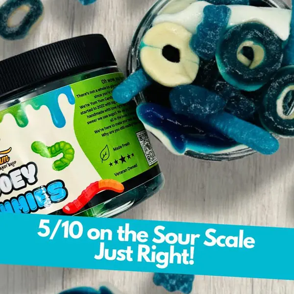 ·Blue Raspberry, Wild Cherry, Green Apple: Dive into a world of flavors with these gooey gummies. Each piece bursts with the essence of blue raspberry, wild cherry, and green apple. Perfect for those who love a tangy twist.