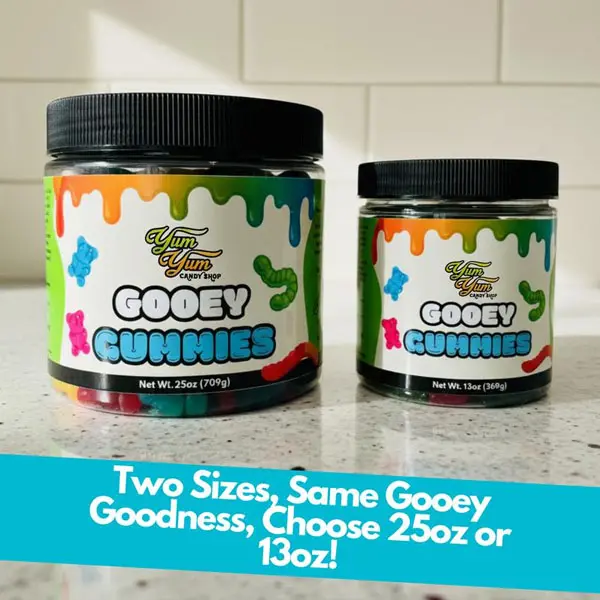 ·Enjoy the Fun: Whether you're on the go or just craving a treat, these gummies are your go-to snack. Savor the unique combination of flavors and textures. Yum Yum Gooey Gummies: your fruity punch snack!