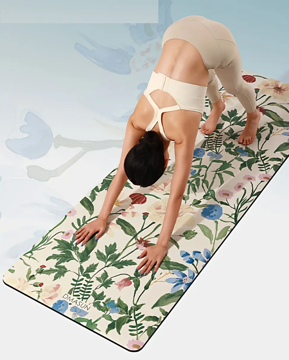 floral yoga mat, aesthetic yoga mat 24x70, non slip yoga mat suede, microfiber yoga mat, pilates mat lightweight, botanical yoga mat, meditation mat aesthetic, travel yoga mat with strap