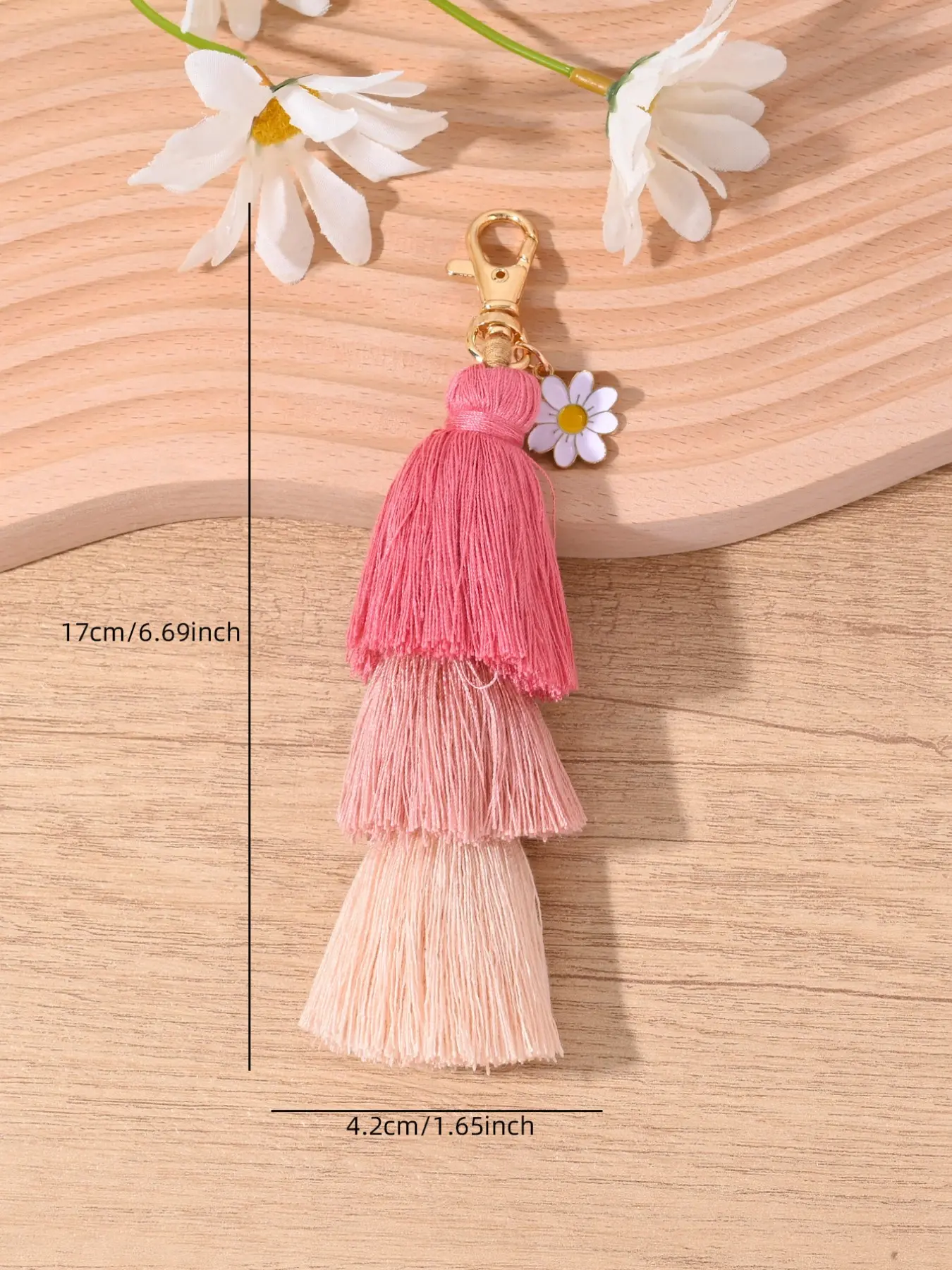 【Boho Aesthetic】: Embrace the bohemian vibe with this colorful daisy fringe keychain, perfect for adding flair to any accessory.