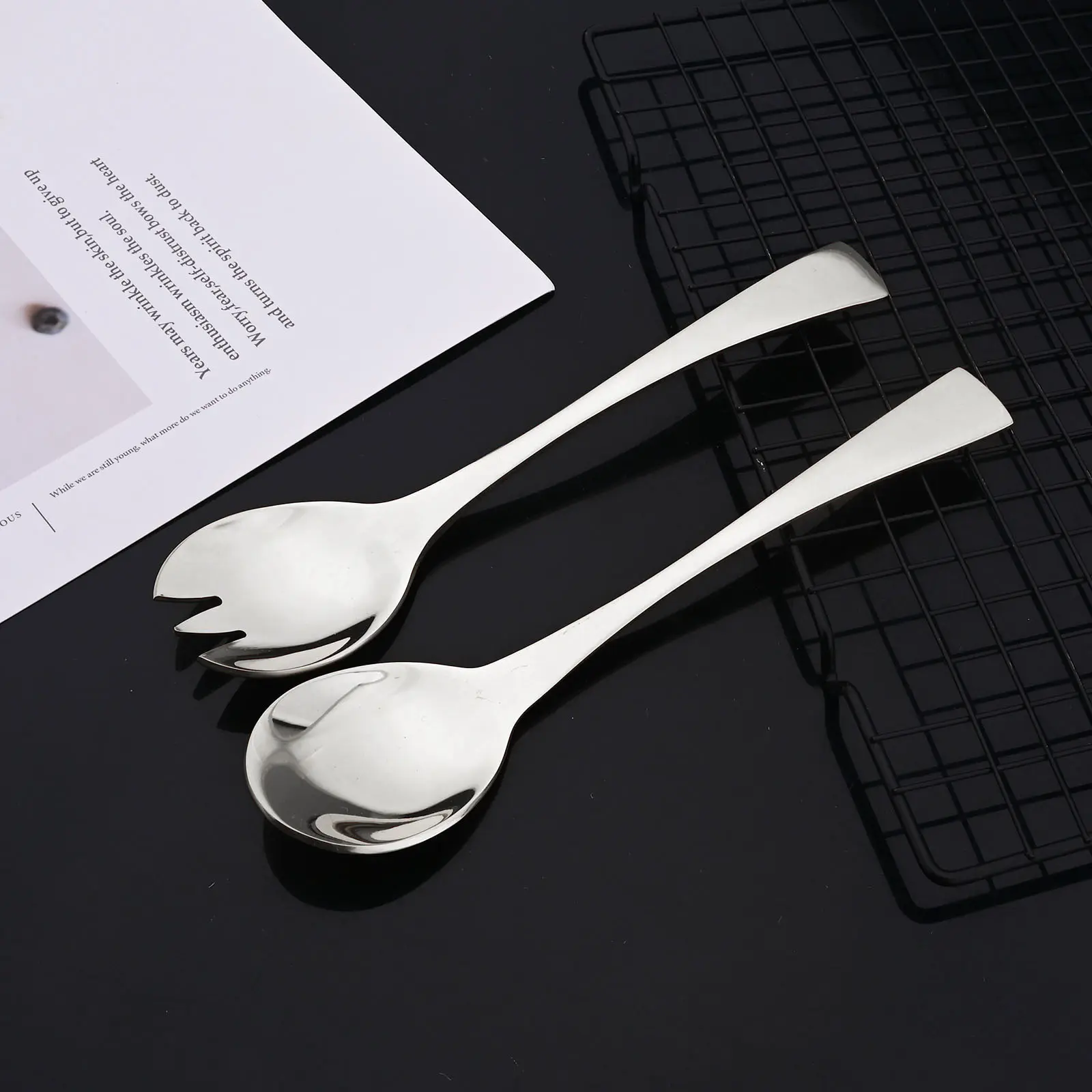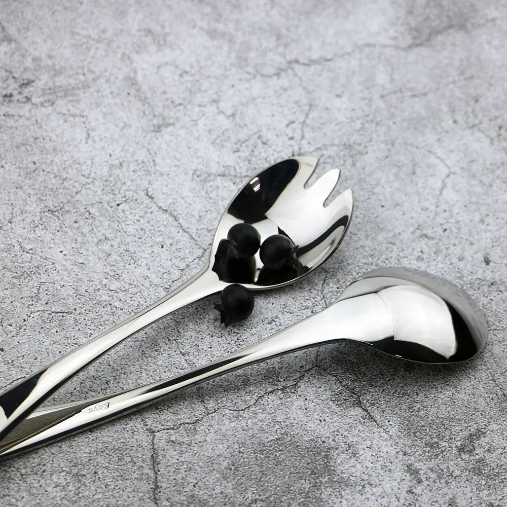 Stainless Steel Mirror Polished Silver 2 Pcs Salad Fork 2 Pcs Salad Spoon Silverware Server Utensil Set