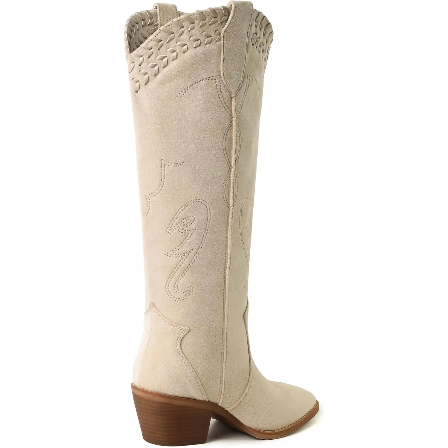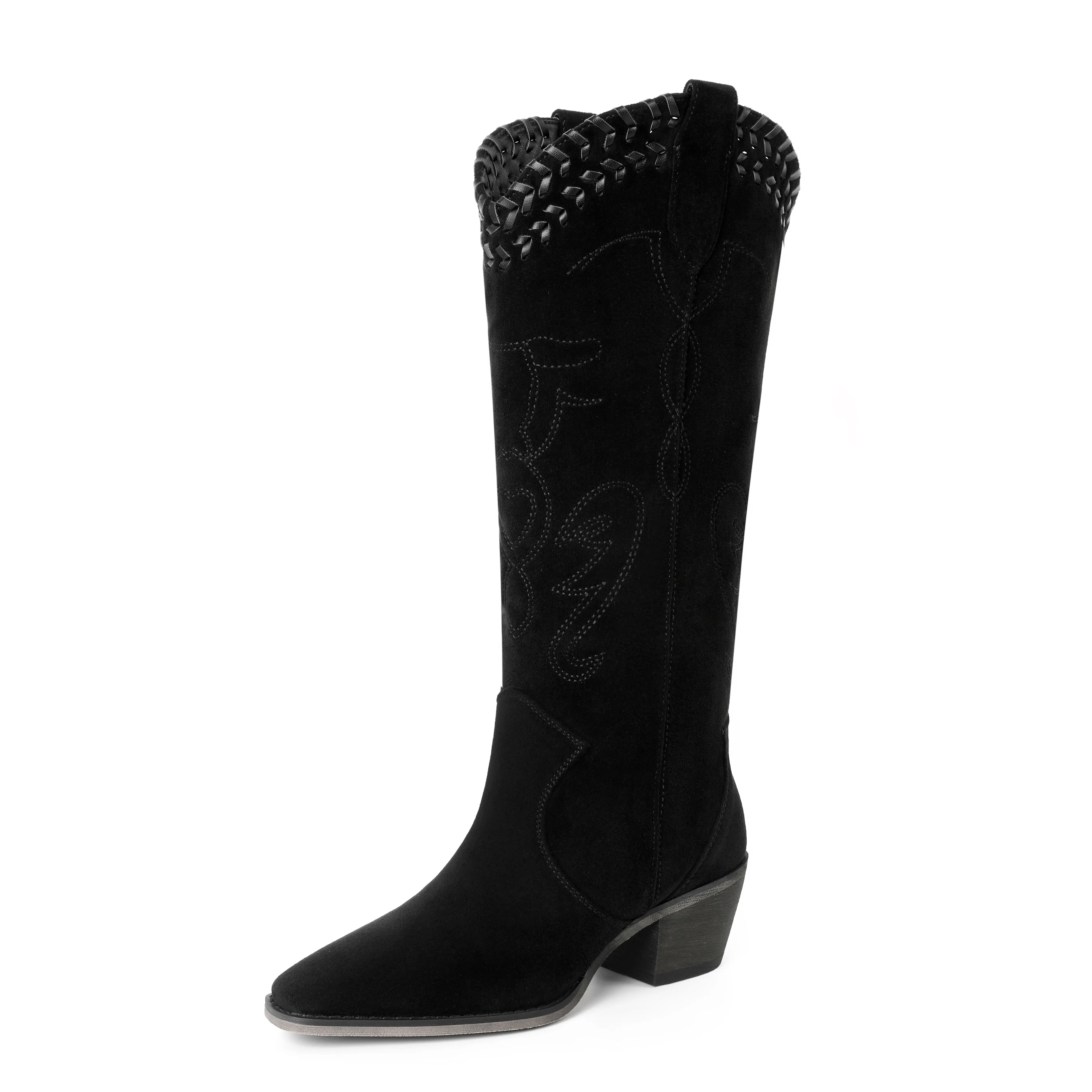 ·[Woven Knee High Boots]: Knee high cowgirl boots are made of high-quality suede & PU leather, breathable lining and padded cushioned insole, maintain a charm appearance while walk confidently.