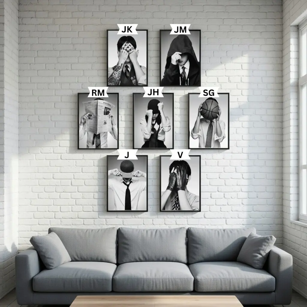 5. [No Frame Poster] OT7 Vintage Black & White Portrait Poster, K-POP World Tour 2026 Poster, Retro Aesthetic Wall Art, Minimalist Gallery Decor