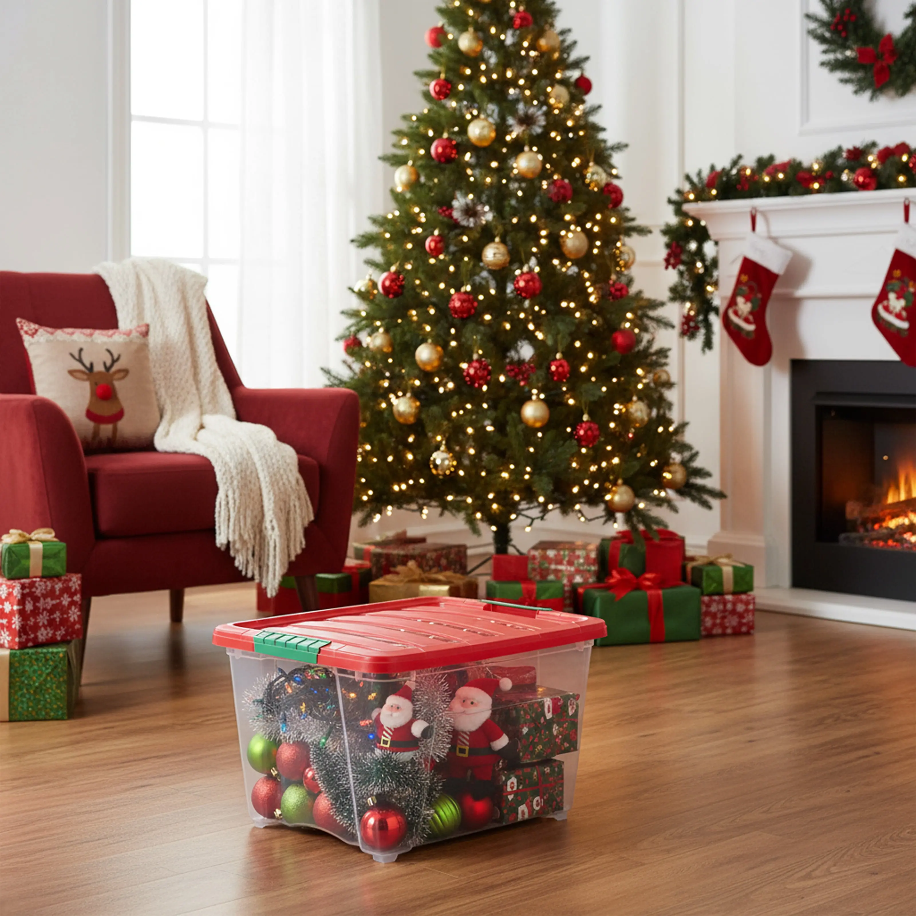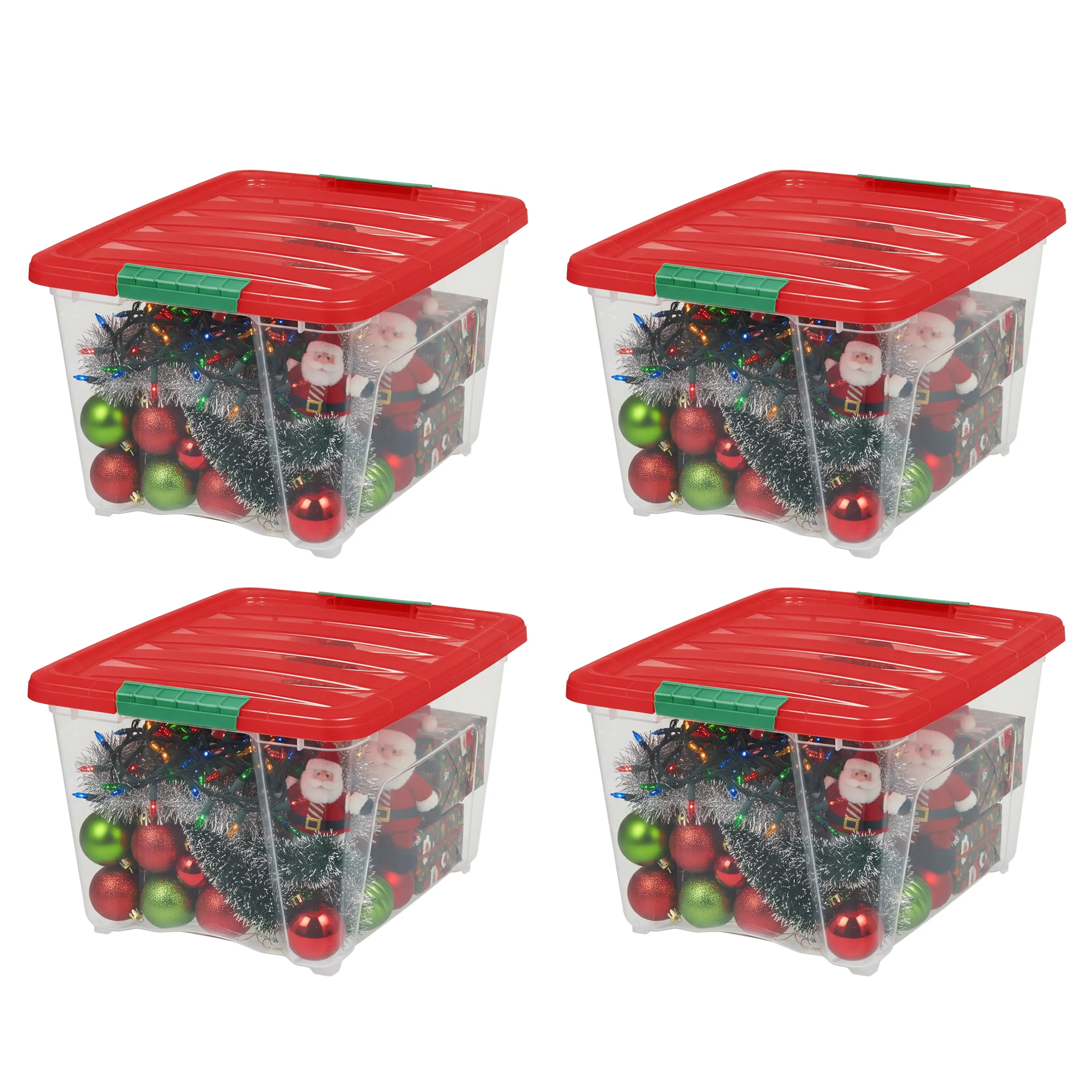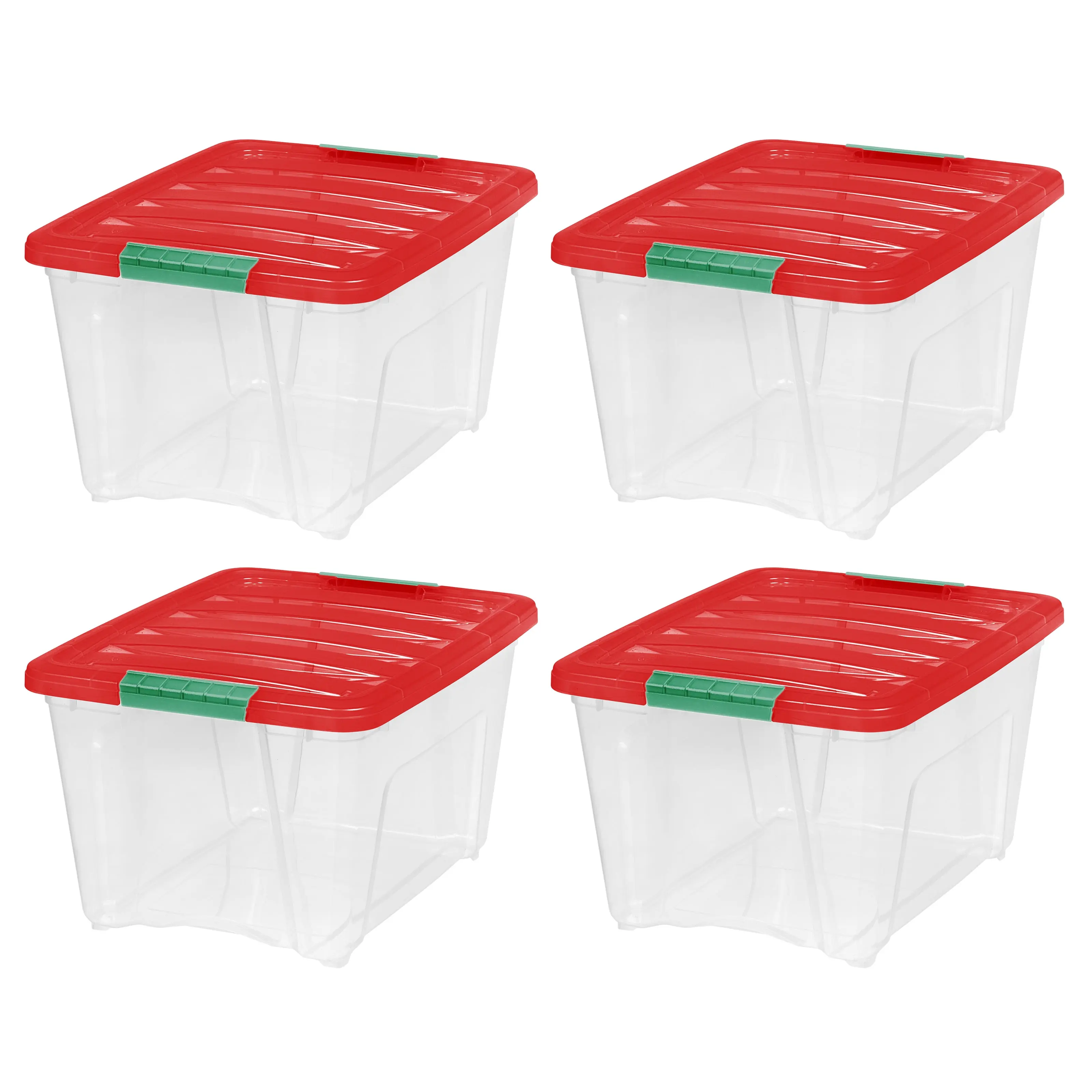 32 Quart Stackable Holiday Plastic Storage Bins with Lids and Latching Buckles Clear Red 4 Pack unbranded