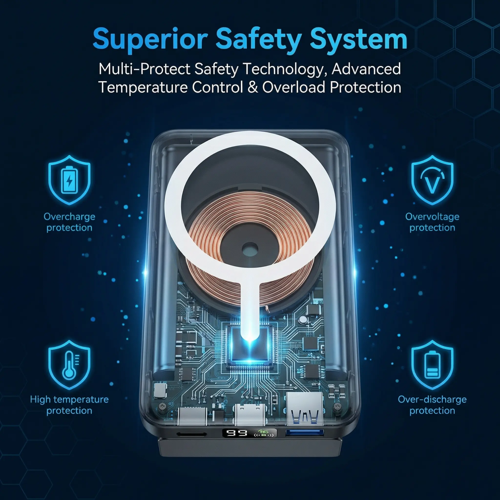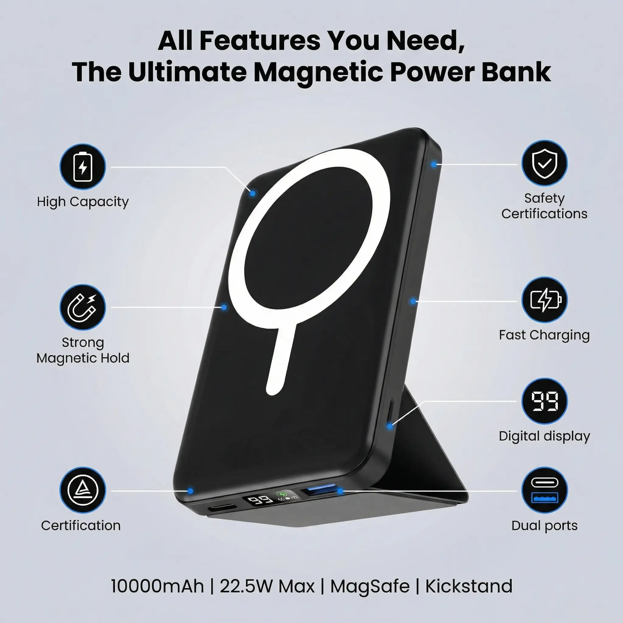 Podoru's 10,000mAh Magnetic Power Bank is your ultimate charging companion. It offers ultra-slim design and powerful performance. Perfect for iPhone 12–17 series, it supports 22.5W PD fast charging. The LED display shows the battery level in real-time. Charge on the go with ease and efficiency.