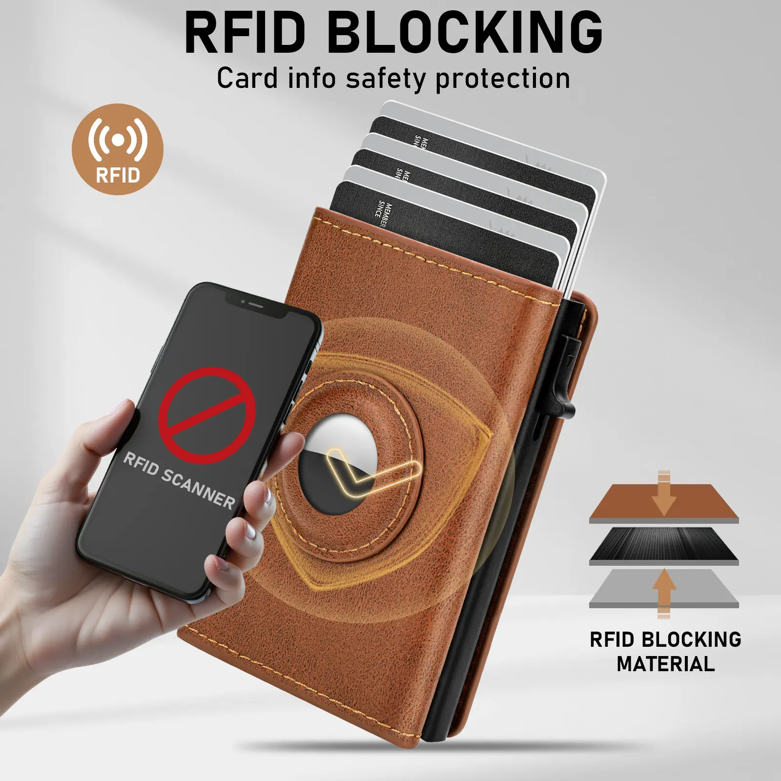 AirTag Wallet - Mens Minimalist Wallet with Apple Air Tag Holder, Slim Smart Pop up Card Case, ID Window, RFID Blocking, Front Pocket (AirTag Not Included)