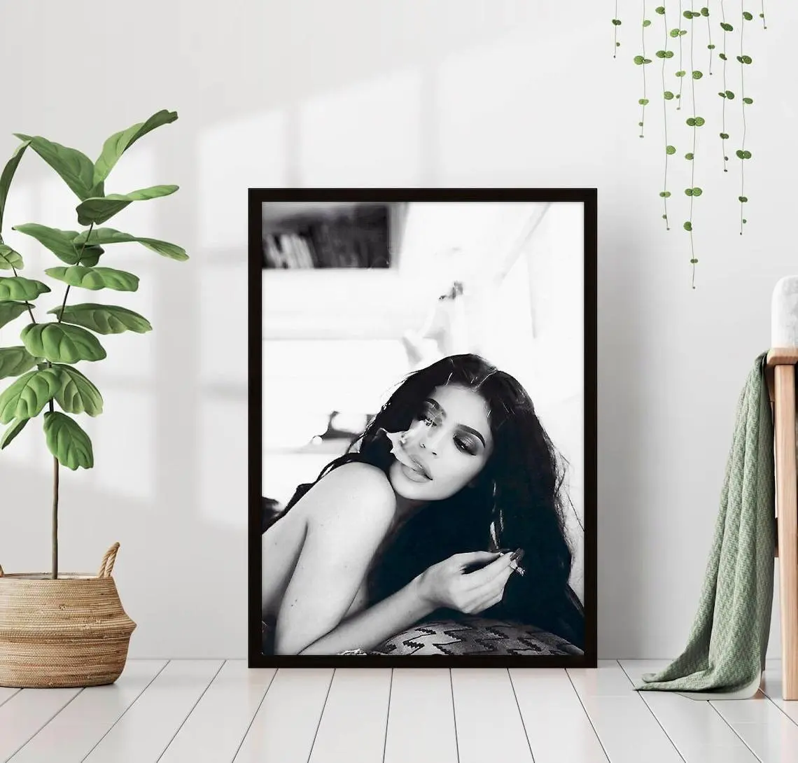(No Frame) Kylie Jenner Smoking Black and White Vintage Retro Photography Model Celebrity Fashion Girl Room Wall Art Decor Poster Printed