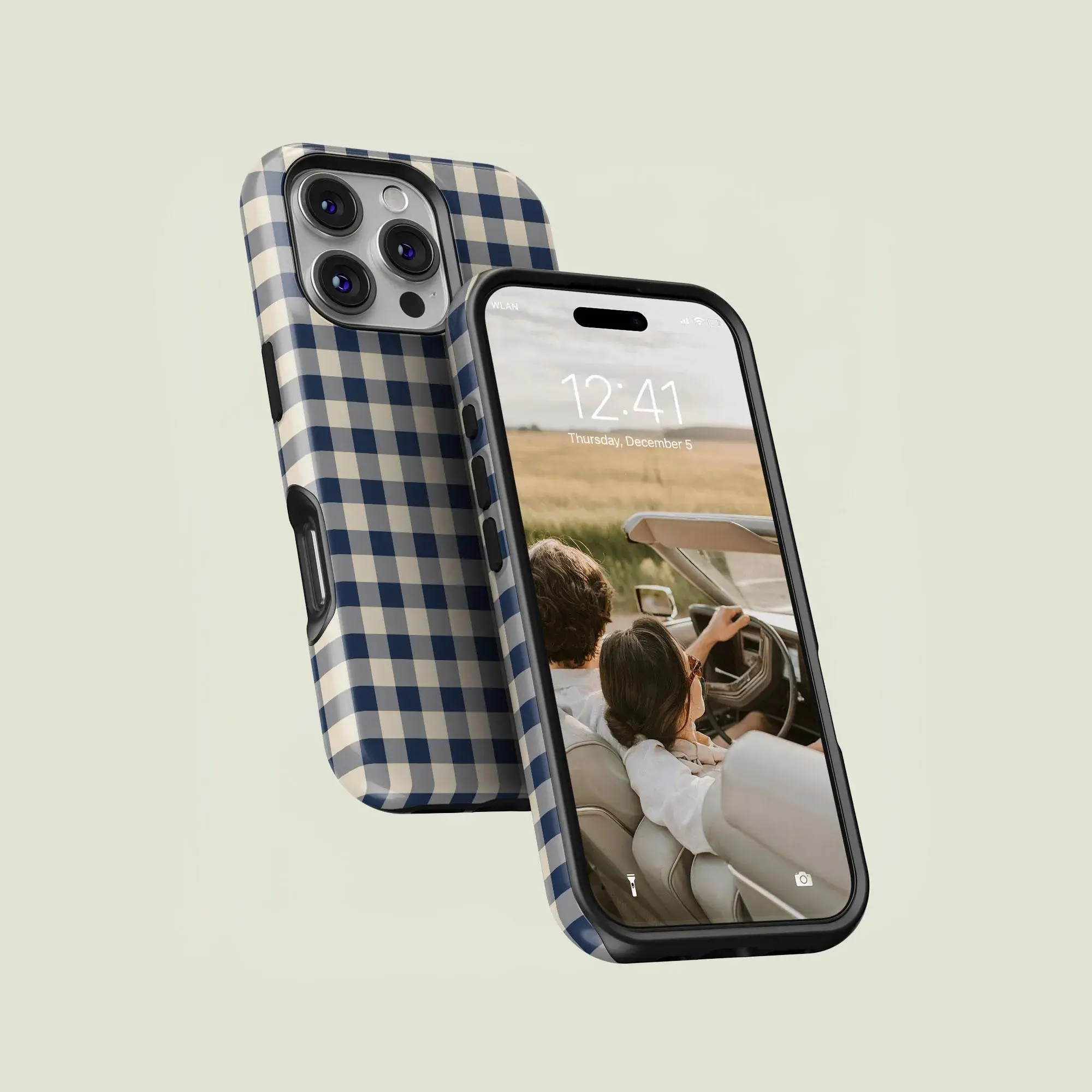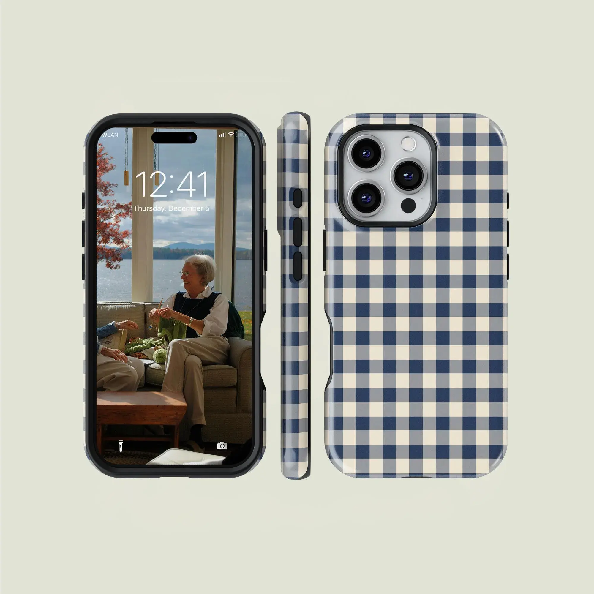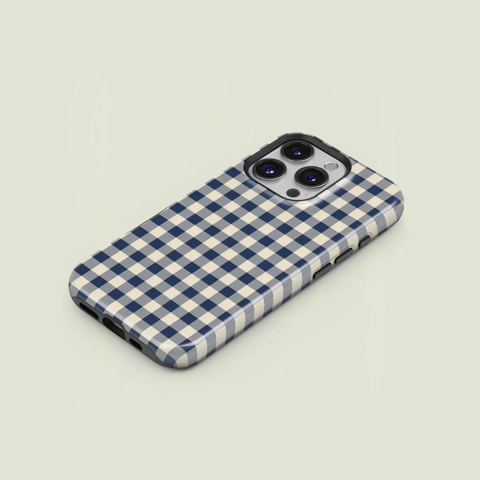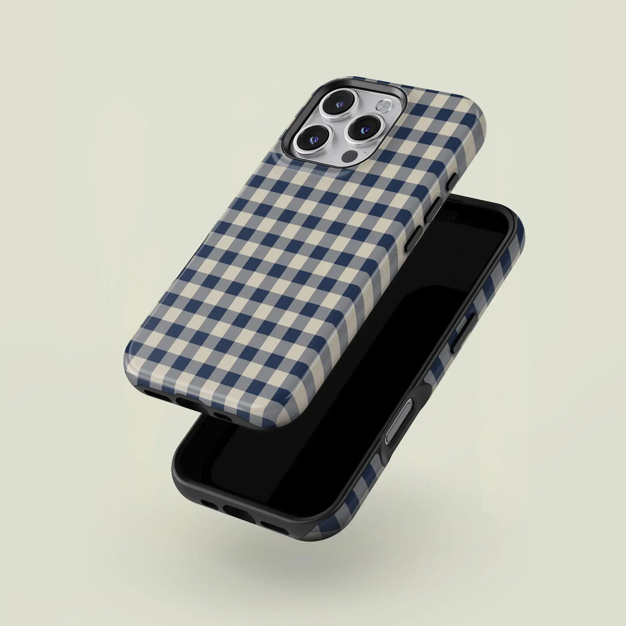 Case Face Cases Mini Gingham Navy & Cream iPhone Case for iPhone 17 16 15 14 13 Pro Max Plus Models Casing Shell Compatible with Samsung Galaxy S25