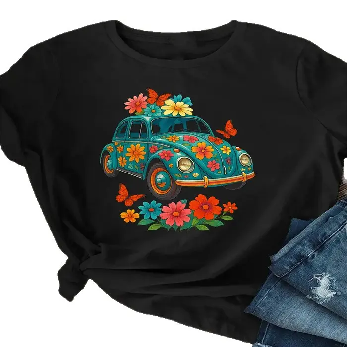 5. Women's Summer T-Shirt Printed Fashion Casual Cute Short Sleeve Women's Crew Neck Printed Short Sleeve T-Shirt