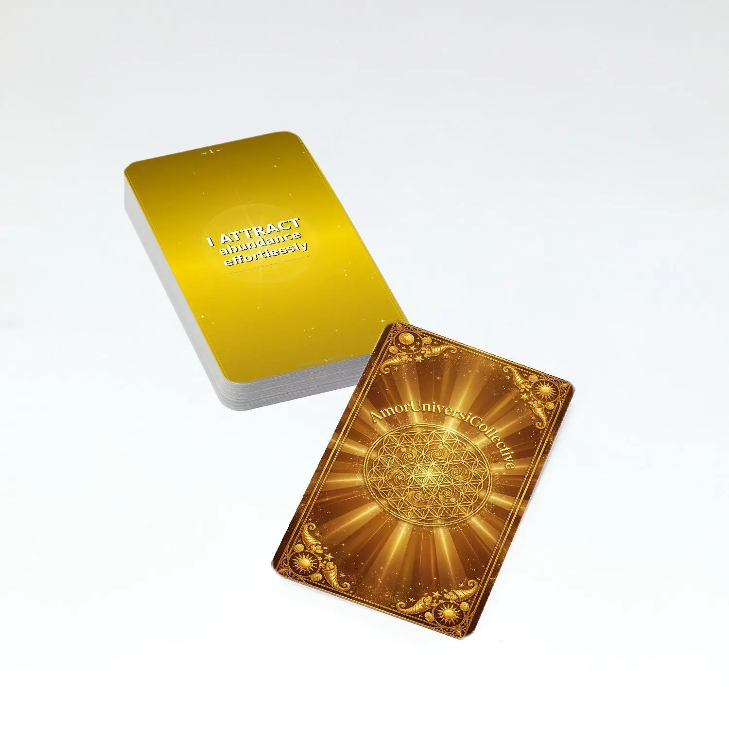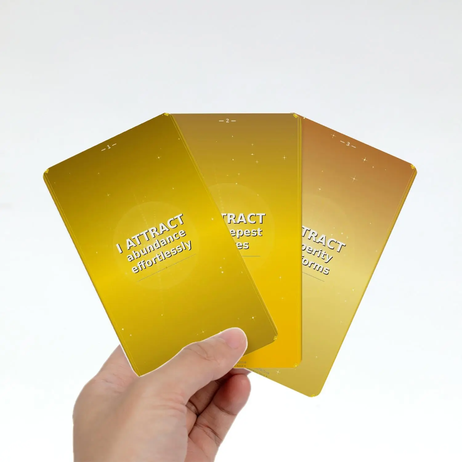 ·25 Unique Manifestation Cards — Each card features a powerful "I ATTRACT" statement with vibrant gold and cosmic artwork