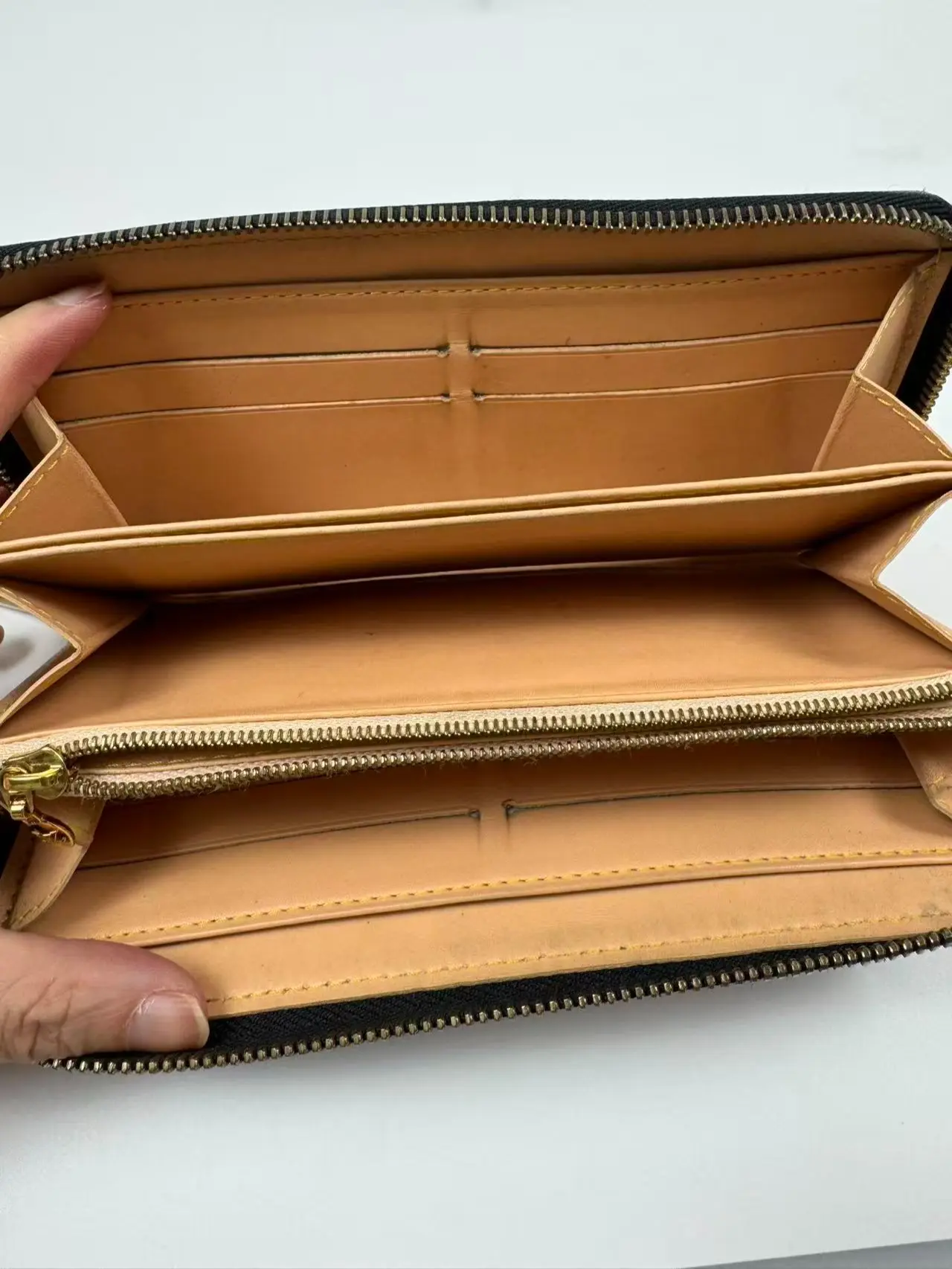 ·Black zip wallet design is sleek and modern.
