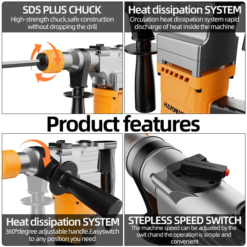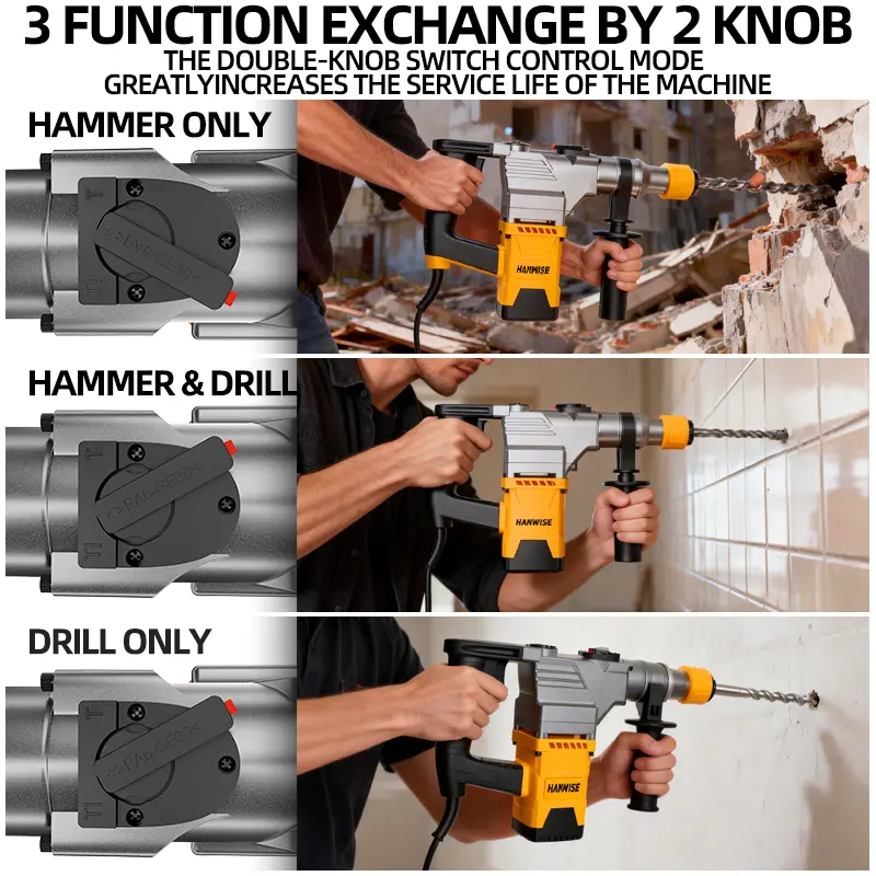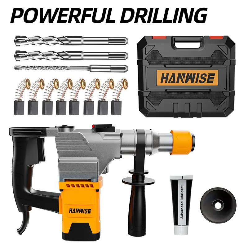 Hanwise Three in One Rotary Hammer Drill with Rope Hammer Drill Rotary Hammer Set Wall Demolition Drilling Concrete Blasting Hammer
