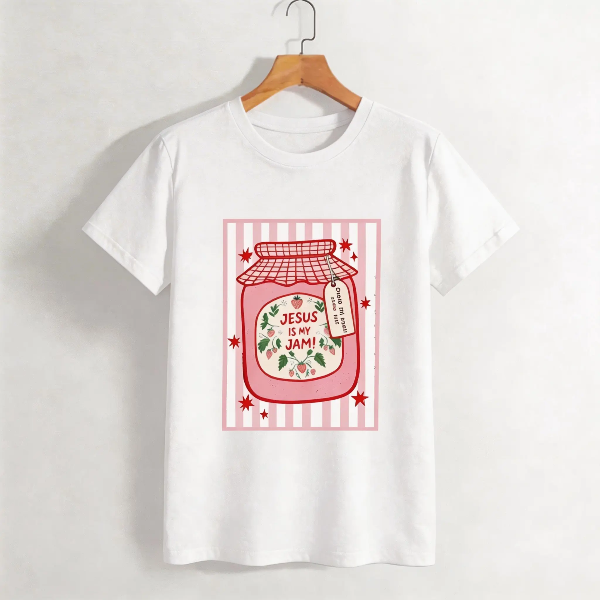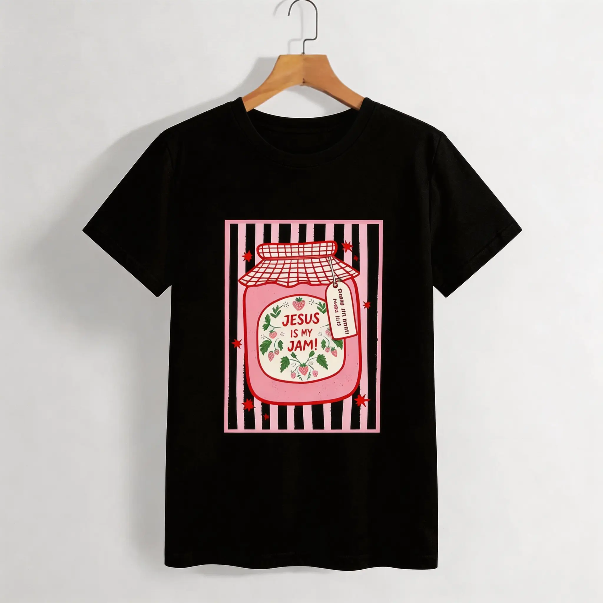 ·Unisex Jesus Is My Jam T-Shirt: This graphic tee features a playful "Jesus Is My Jam" design with a strawberry jam jar motif. Perfect for those who blend faith with fun. 🍓