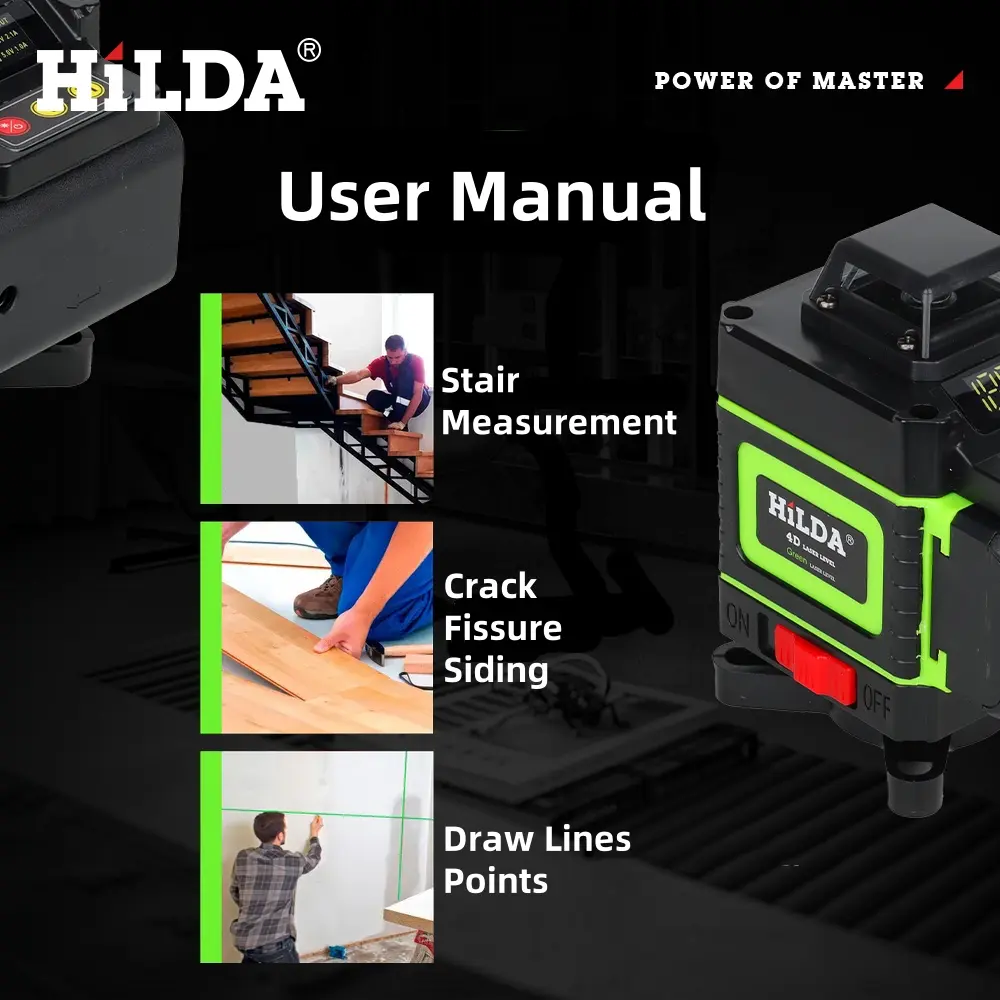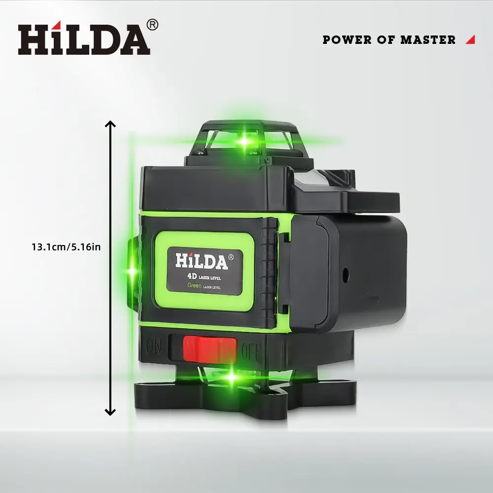 Upgrade your leveling game with the HILDA 4D 16-Line Green Laser Level, the ultimate tool for DIYers, contractors, and home renovators. This professional-grade laser delivers 360° full-room coverage with 16 ultra-bright green lines, ensuring perfect alignment for tiling, framing, hanging, and every construction project. No more guesswork, no more crooked walls—just precision, every single time.