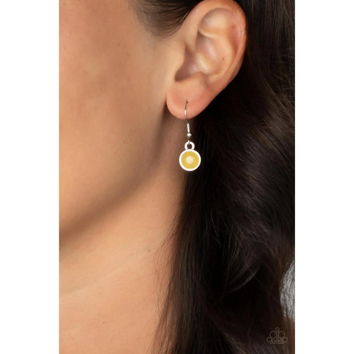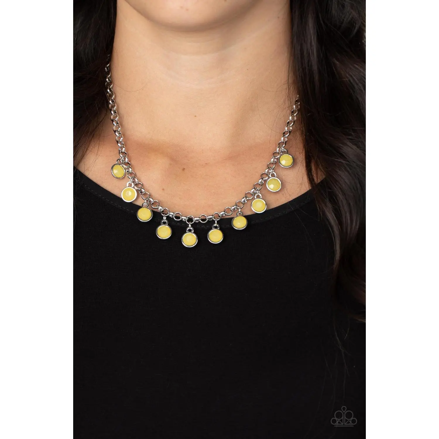 Featuring a milky shimmer, opaque Daffodil crystal-like beads are pressed into simple silver settings as they dance below the collar for a colorfully carefree look. Features an adjustable clasp closure.