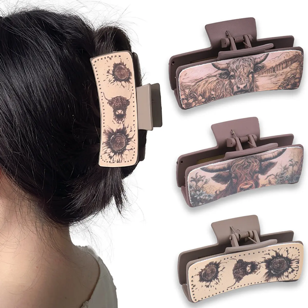 Multicolor Bull Head Square Hair Clip Style Leather PU Simple Versatile European and American Shark Clip High Ponytail Claw Clip