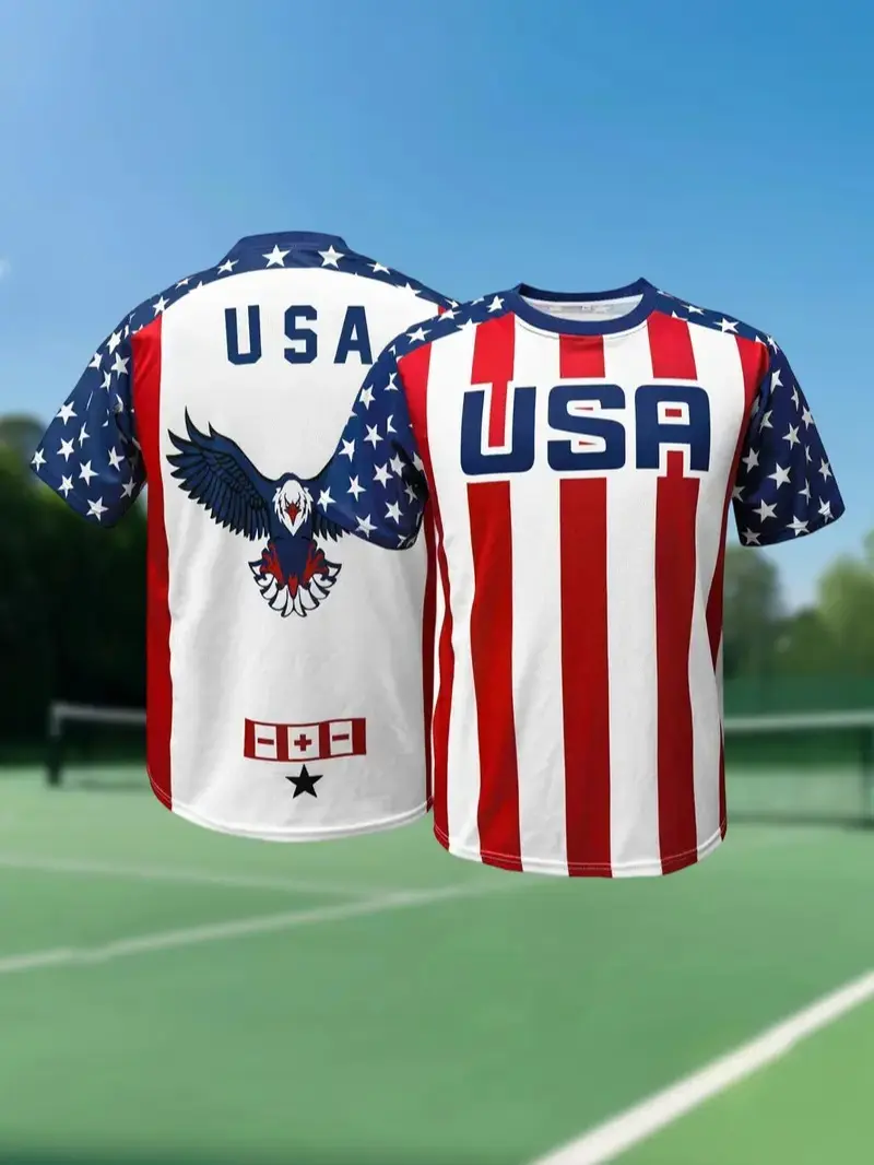 Men's USA 2026 World Cup Soccer Jersey American Flag Stars & Stripes Print with Eagle Graphic Breathable Short Sleeve Football Shirt for World Cup Match Day Patriotic Streetwear Daily Casual Wear