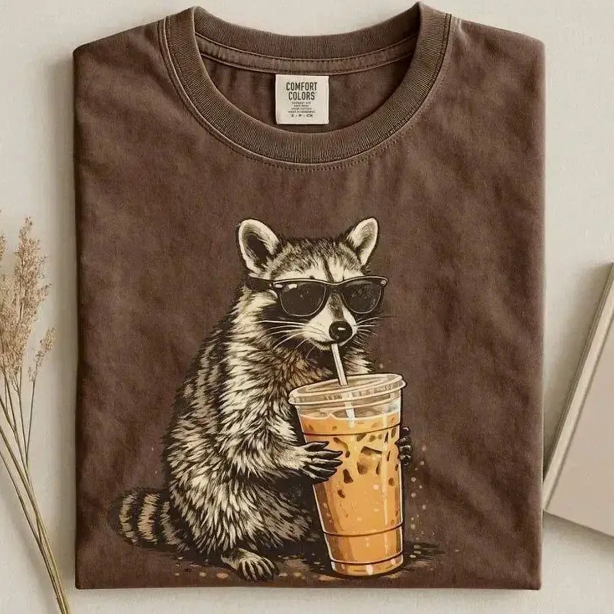 5. Comfort Colors Raccoon Iced Coffee Shirt, Funny Animal Graphic Tee, Comfort Colors Graphic Tee, Casual Outfit, Vintage Wash Shirt, Oversized Women’s Outfit, Apr 8