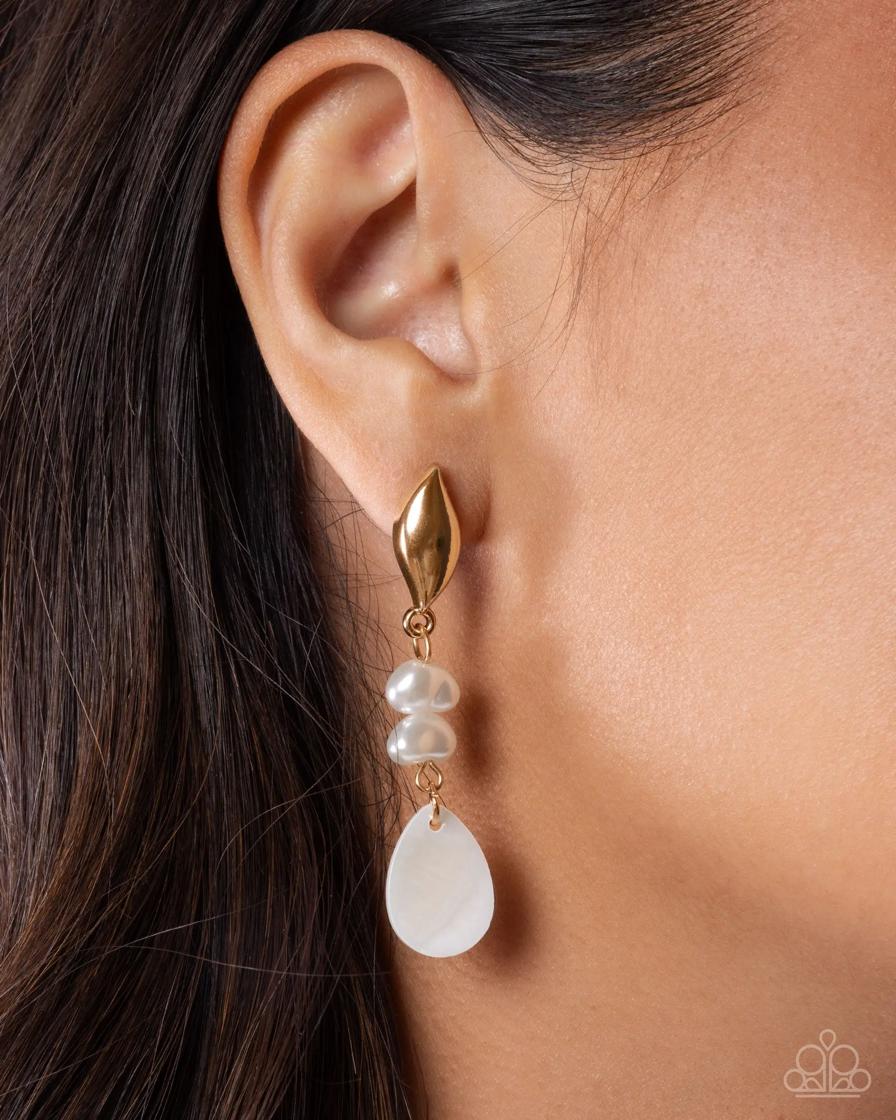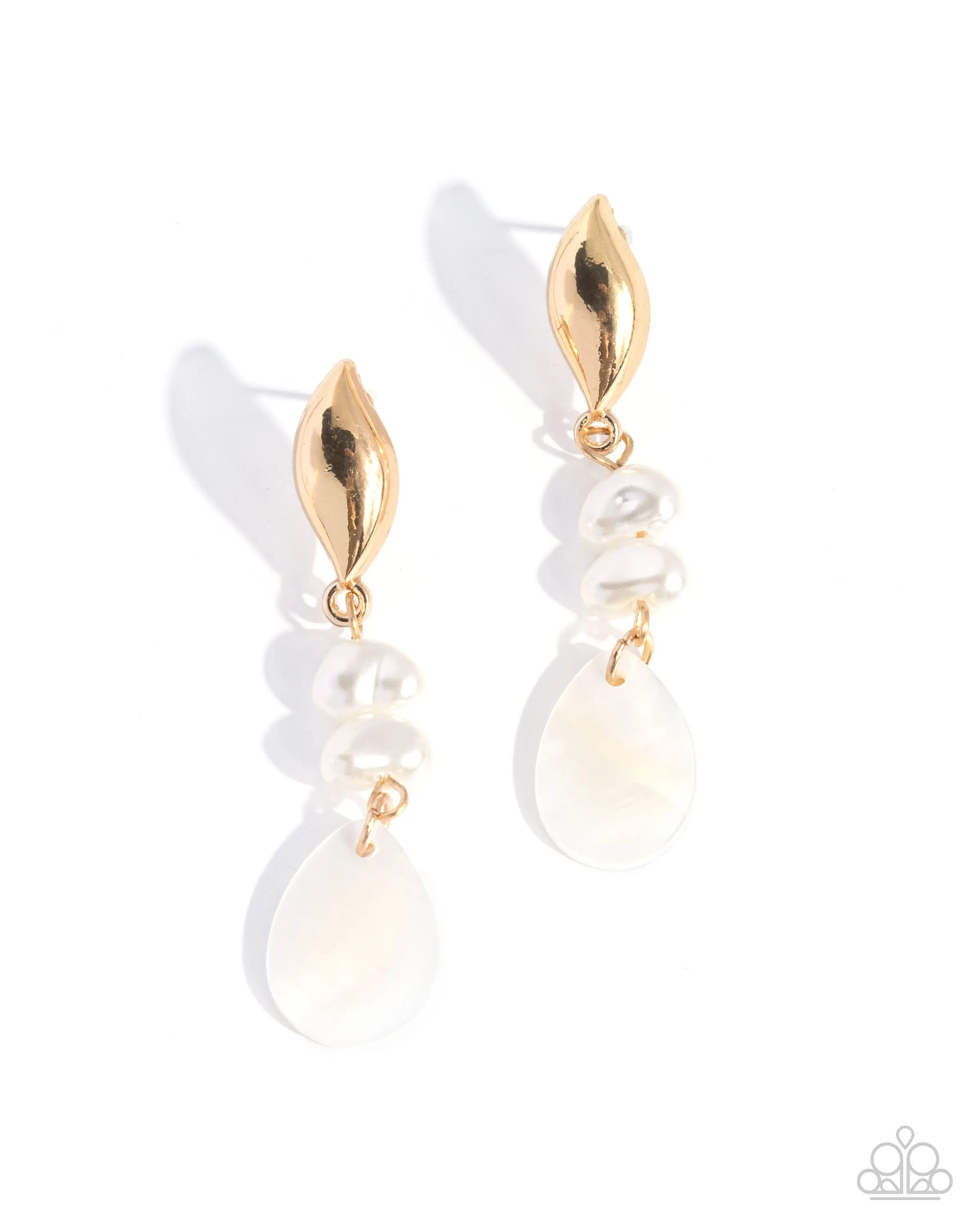 Sensational Sway - White Gold Shell Post Earrings - Paparazzi #P5PO-WTXX-533XX