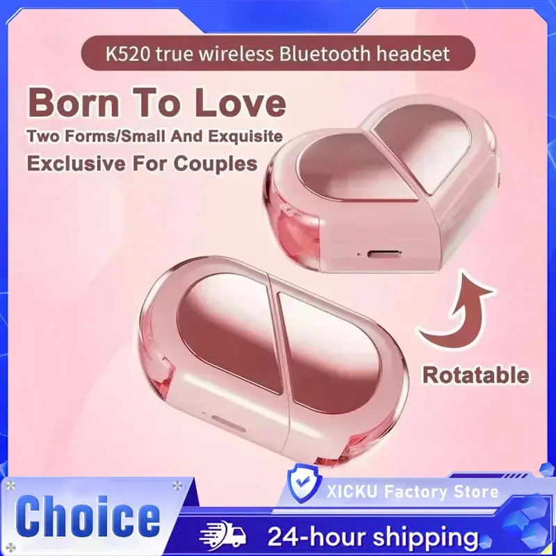 noisecancellingheadphone Wireless Earbuds Stereo Earphone Rotatable Love Heart Shaped Charging Case Low Latency Headphones For Phone Tablet