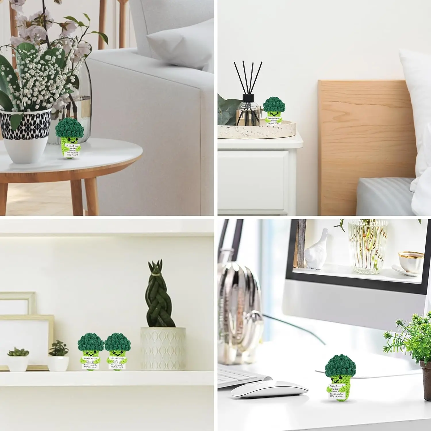 Handmade Emotional Support Pickle Cucumber Crochet Doll with Inspirational Cards, Cute Knitted Funny Pickle Potato Companion Gift, Perfect for Friend Birthday, Holiday Surprises and Adorable Broccoli Hoedia Home Decor to Bring Joy and Encouragement