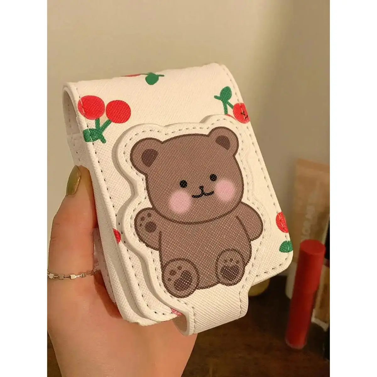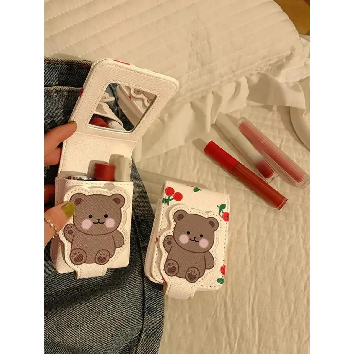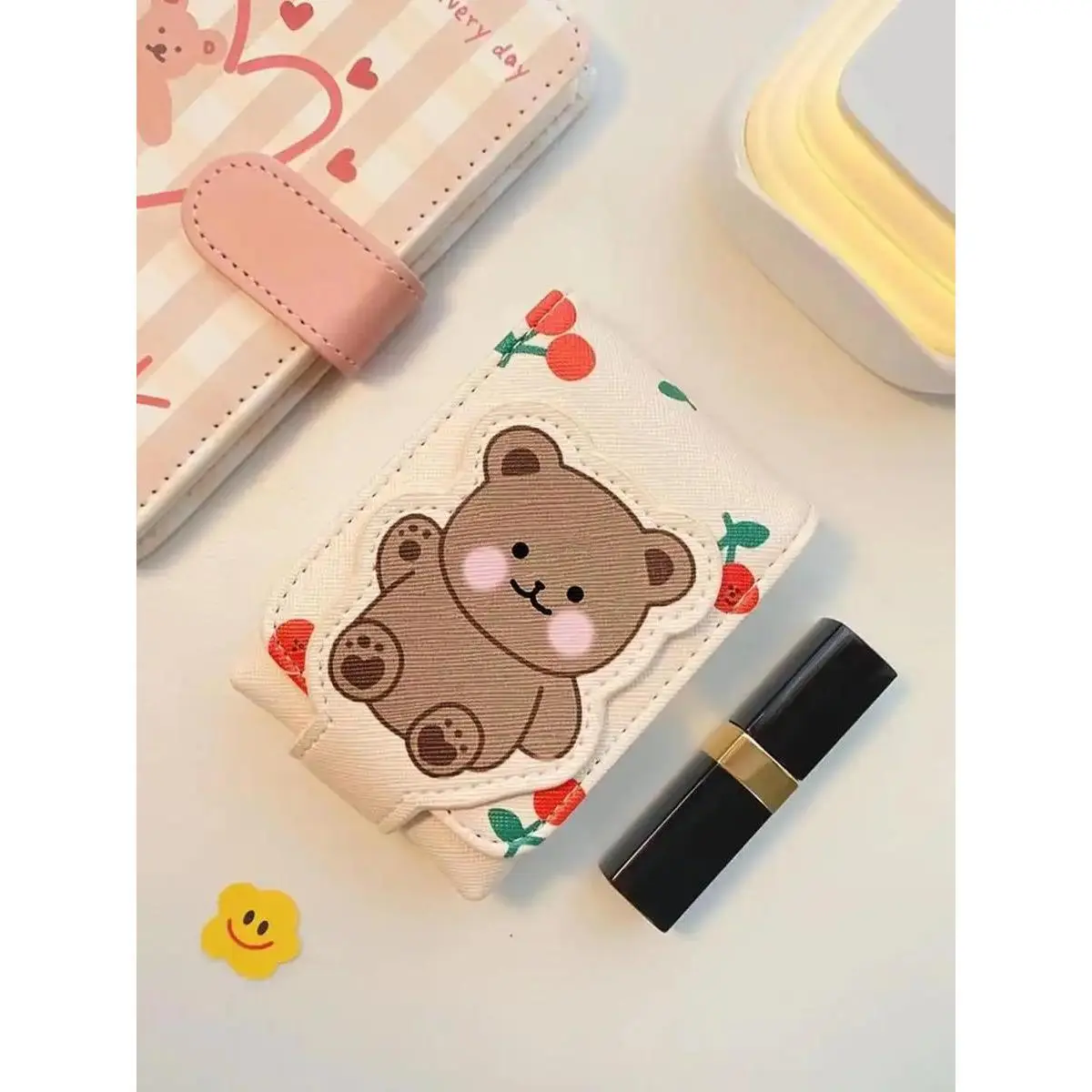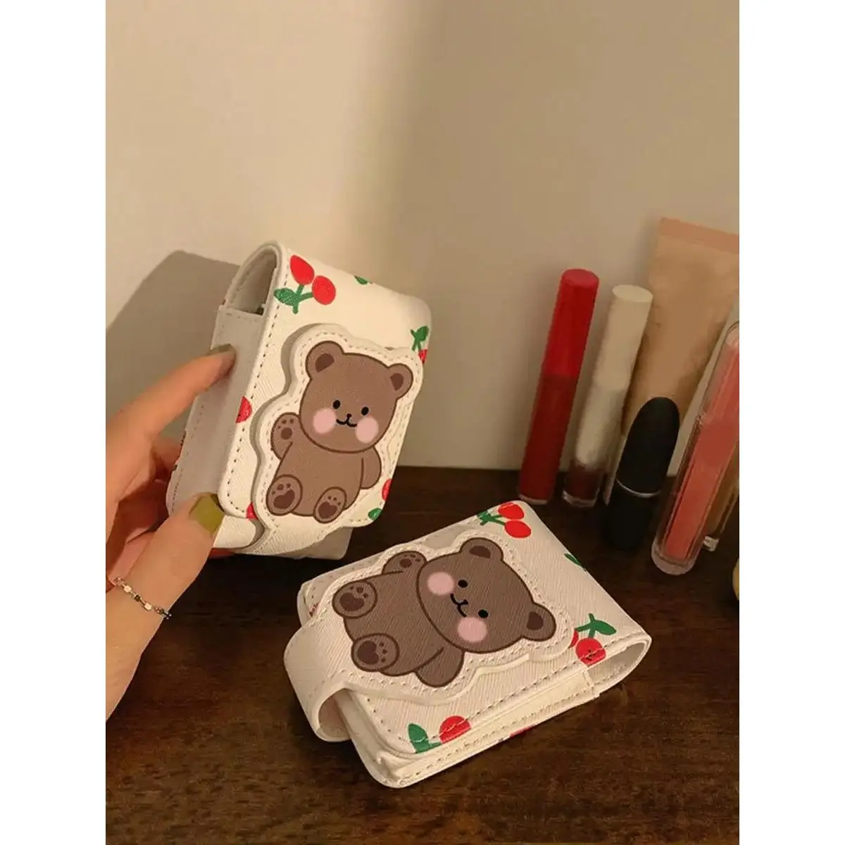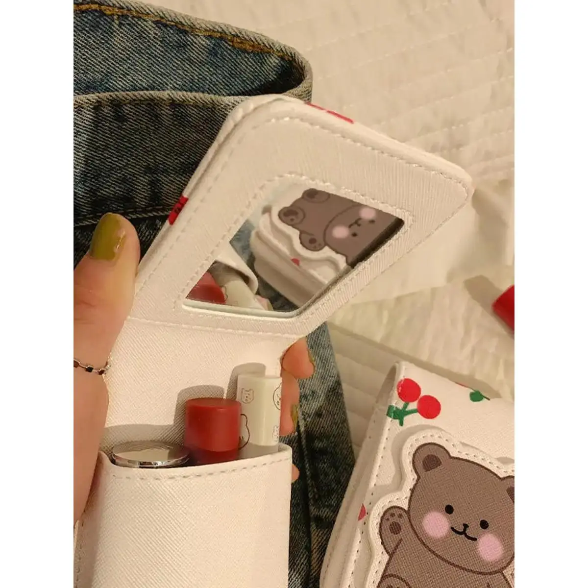 Father's Day Gifts, Cute Cartoon Bear & Cherry Pattern Makeup Bag with Mirror, Back To School, Portable Travel Makeup Bag, Cosmetic Storage Bag, Makeup Organizer Pouch for Women & Girls,