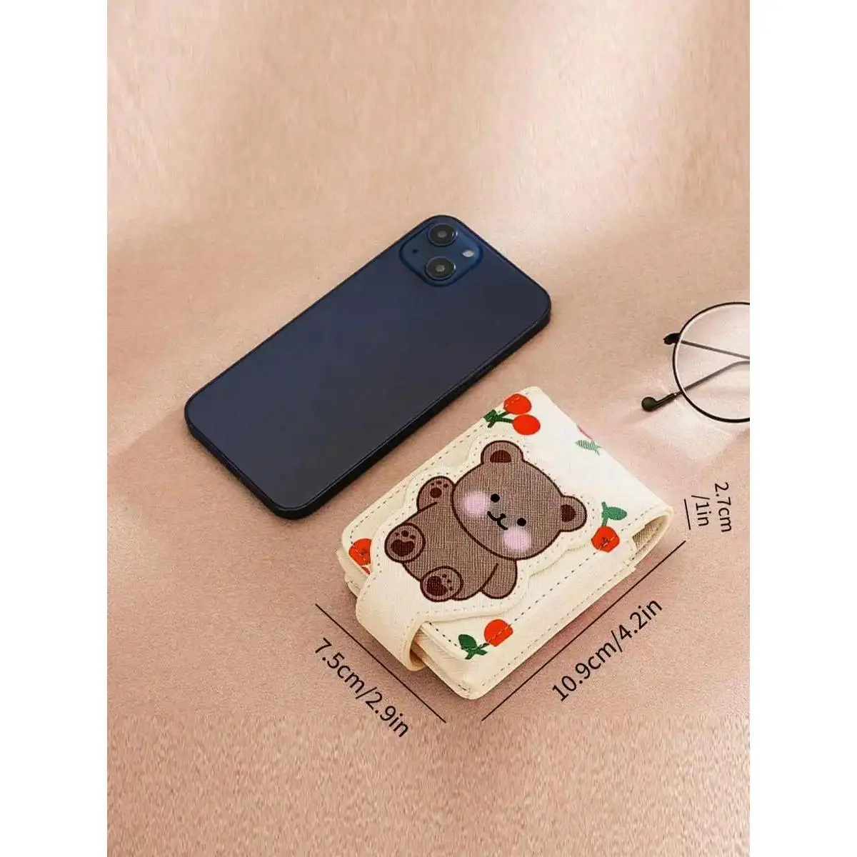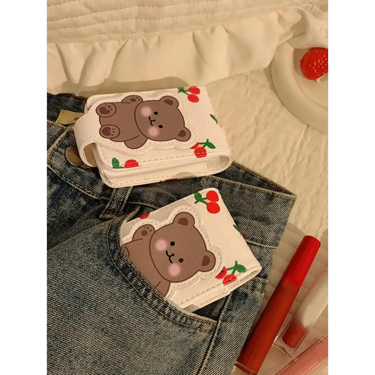 [Unique Pattern]: Featuring a charming cartoon bear and cherry print, this makeup bag stands out with its playful and eye-catching design.